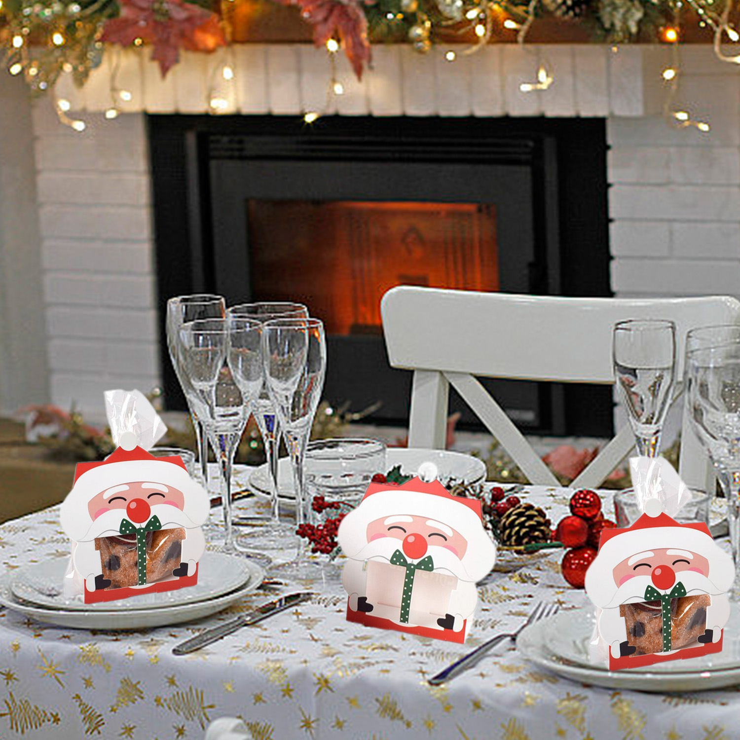 Specifications Material: Paper Color: Red and White Size: 14*7.5*4cm/5.1*2.95*1.57inch Package contents: 8Pcs Christmas Candy Boxes