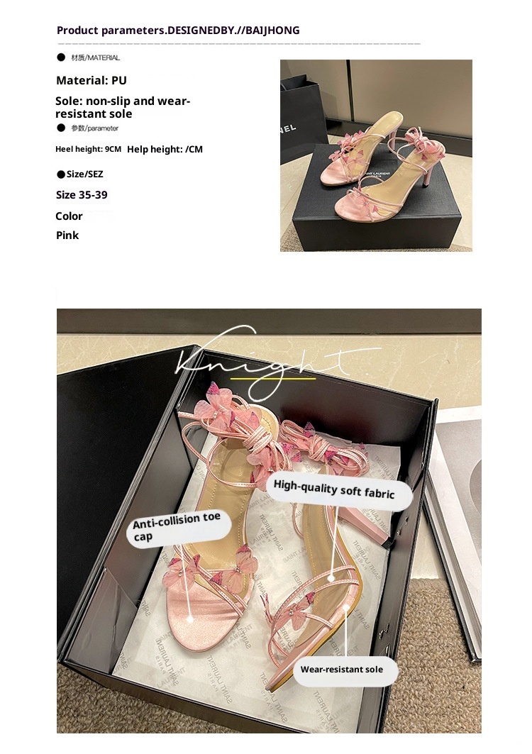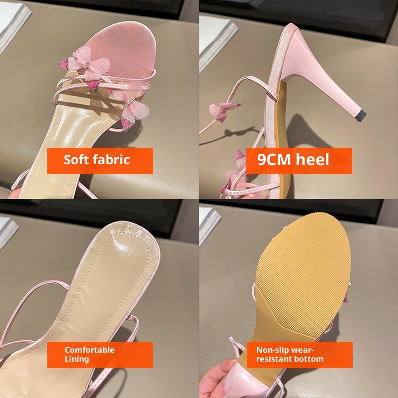 Butterfly High Heel Sweet Stiletto Heel Thin Strap Sandals