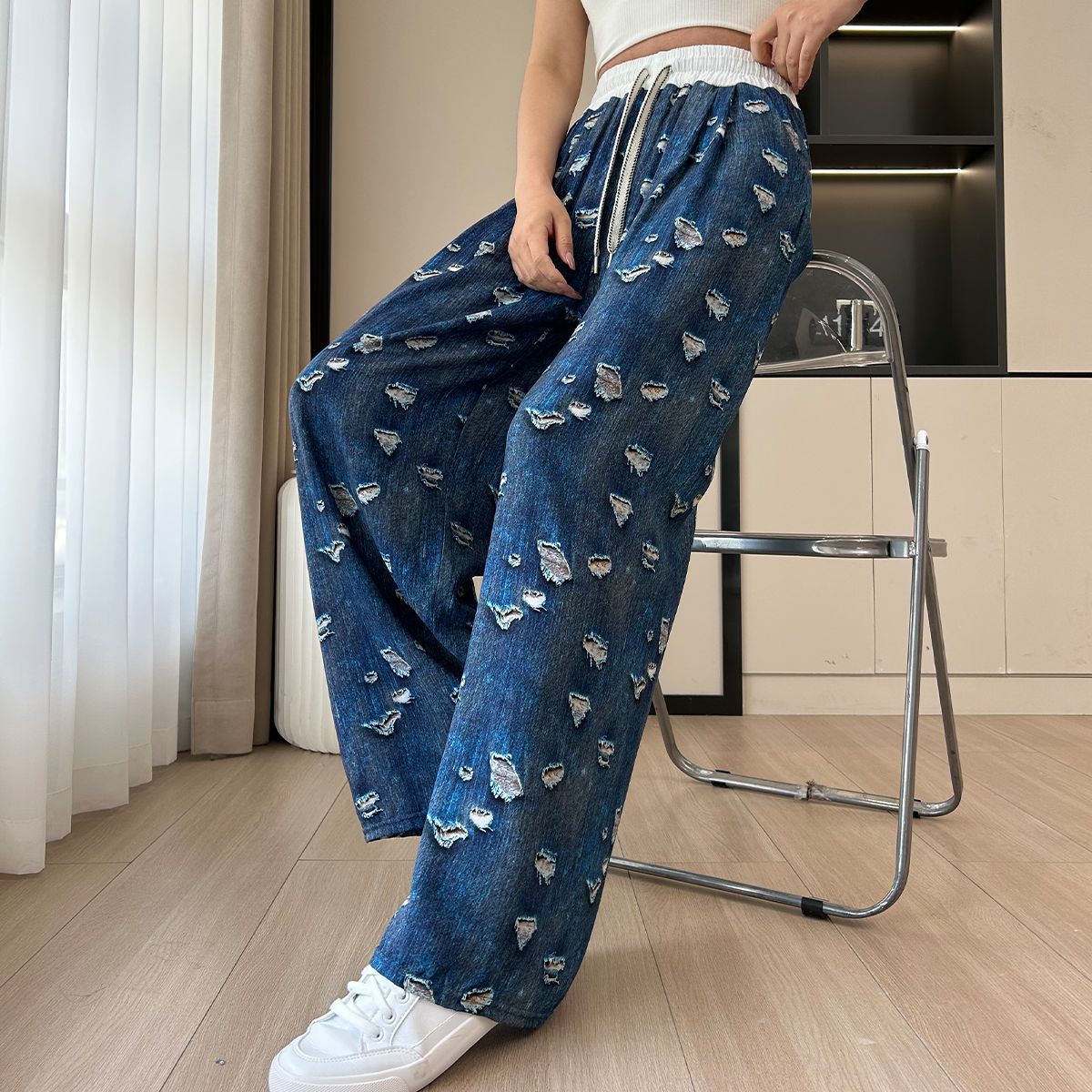 Casual Ladies Drapey Floor-Length Straight Pants