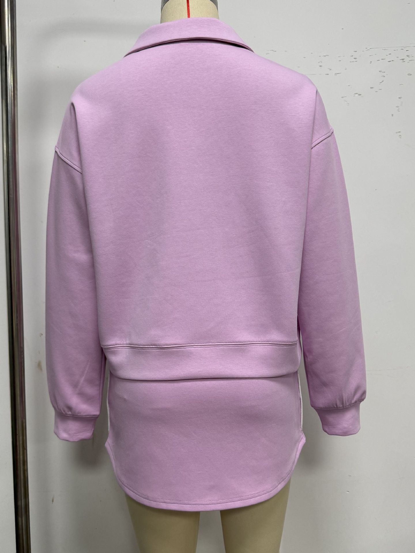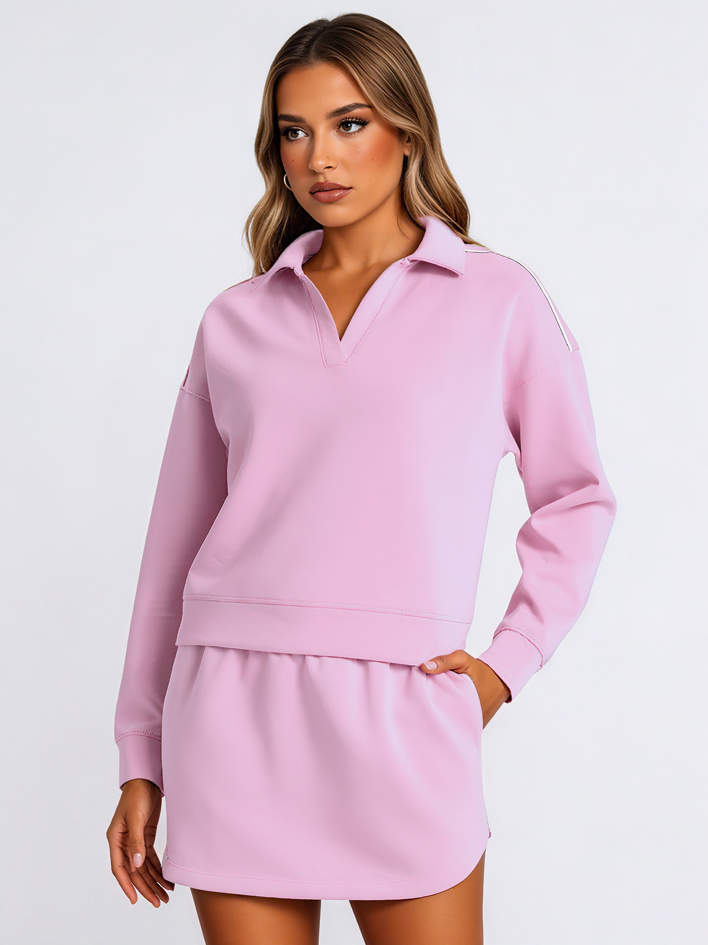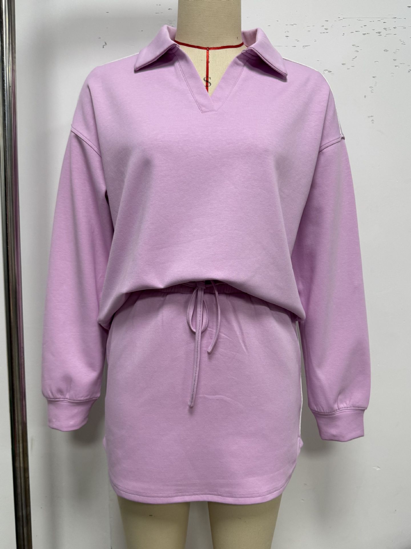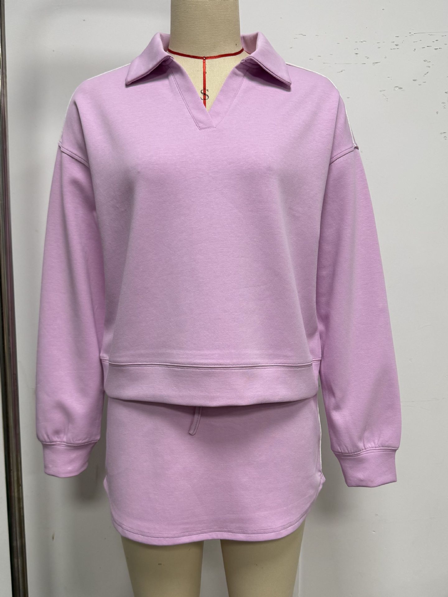 Casual Sport Lapel Long Sleeve Top With Pocket Skirt Set
