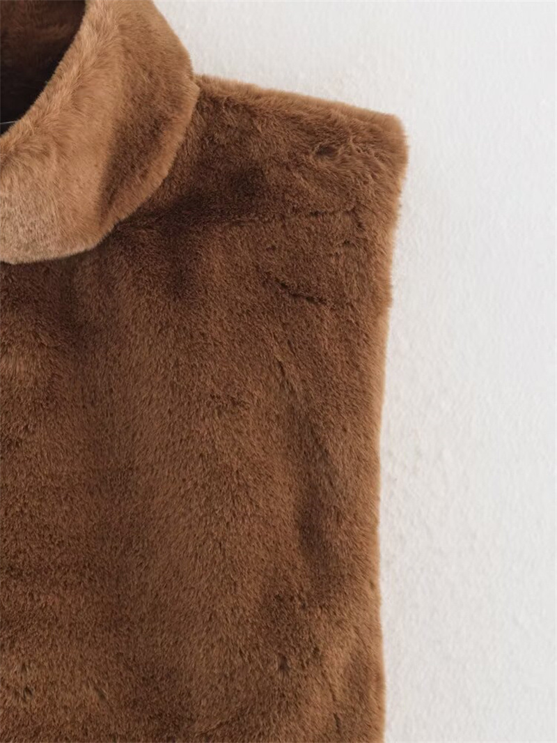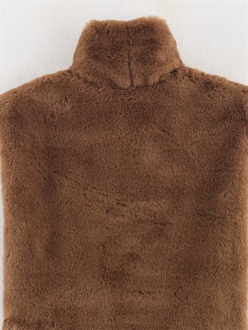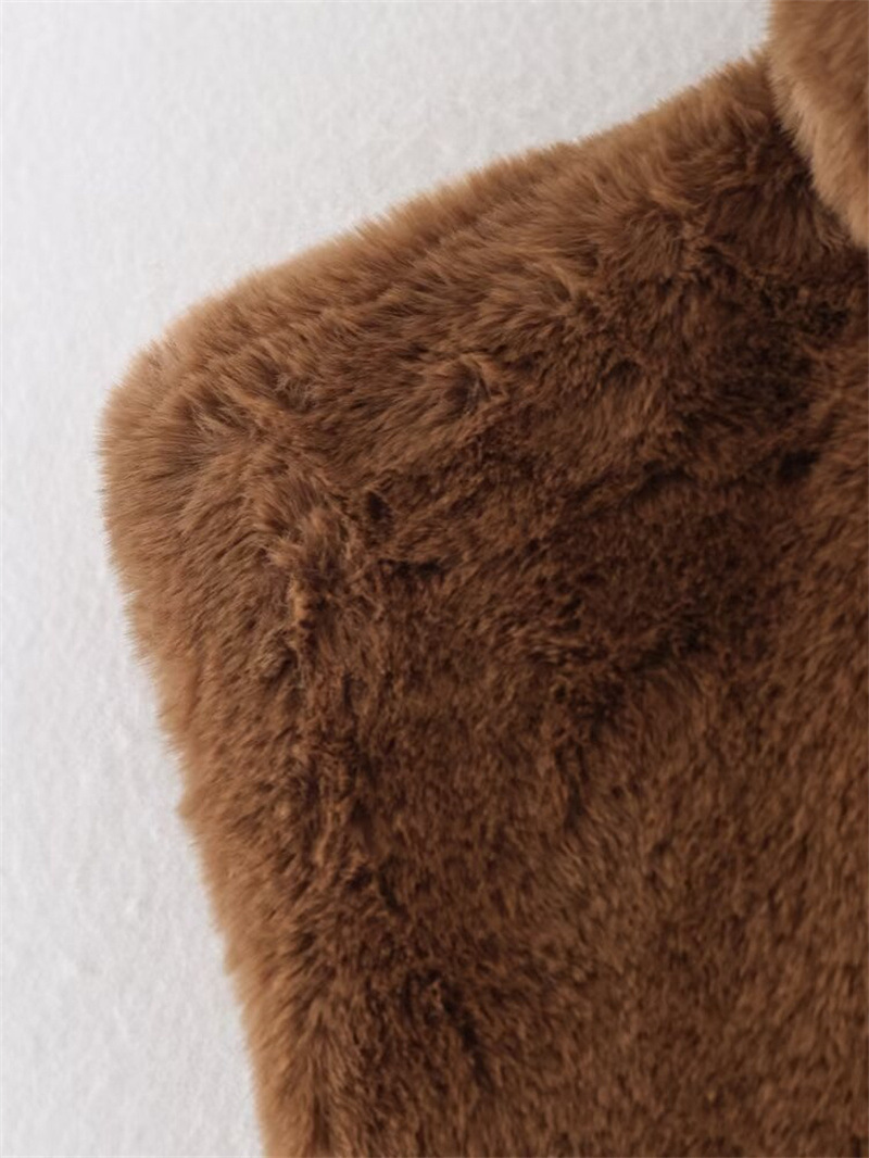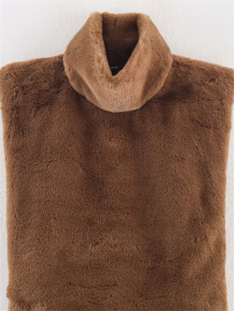Casual Versatile Solid Color Half-turtle Neck Furry Sleeveless Top Women