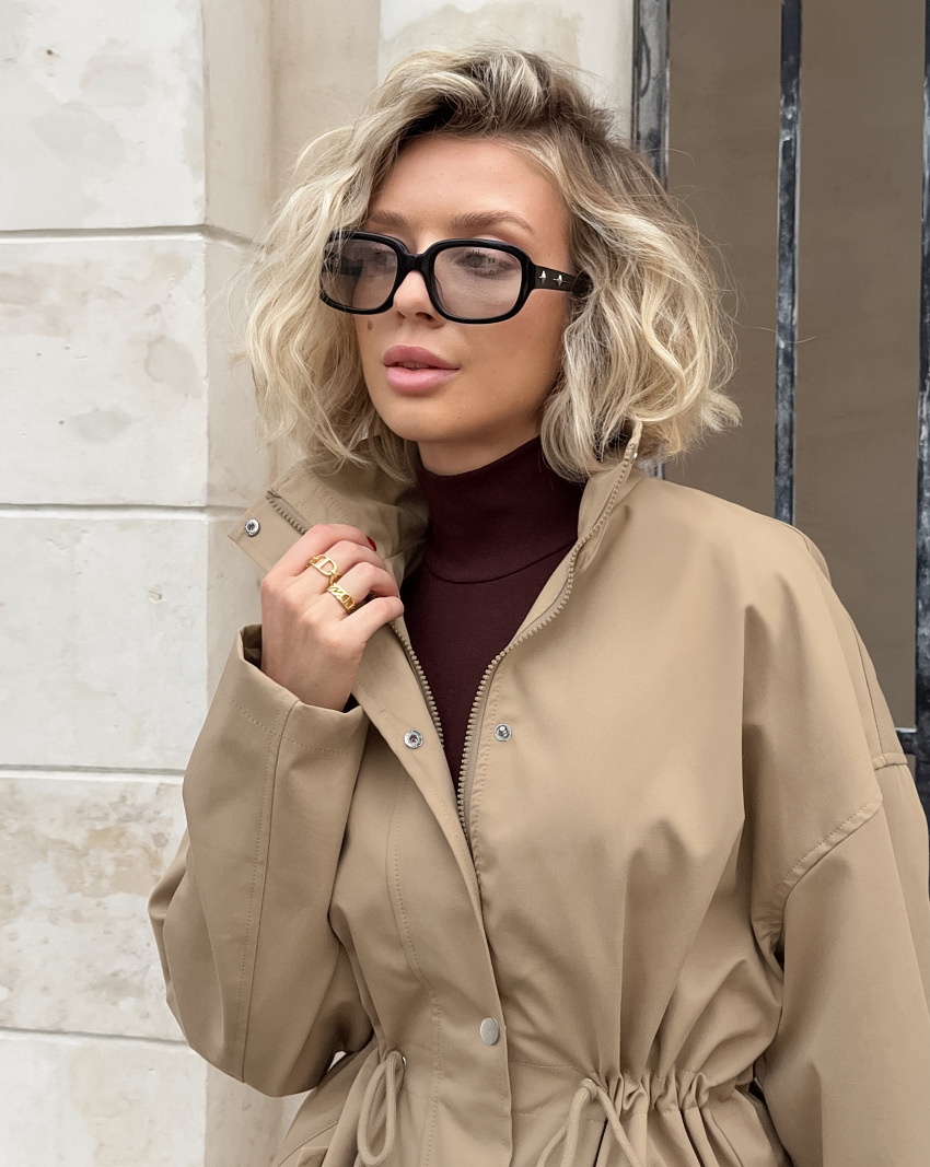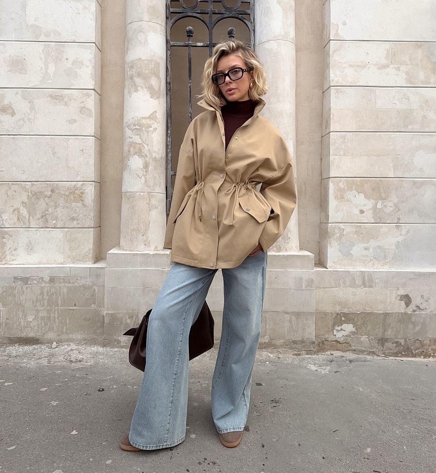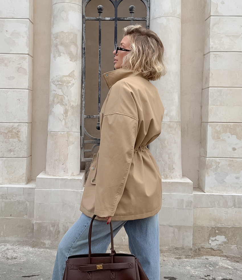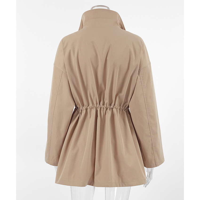 Drawstring Trench Khaki Waist Mid-length Coat
