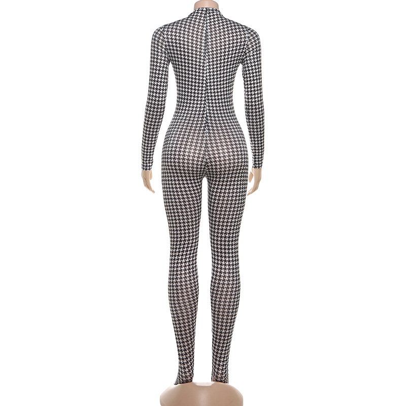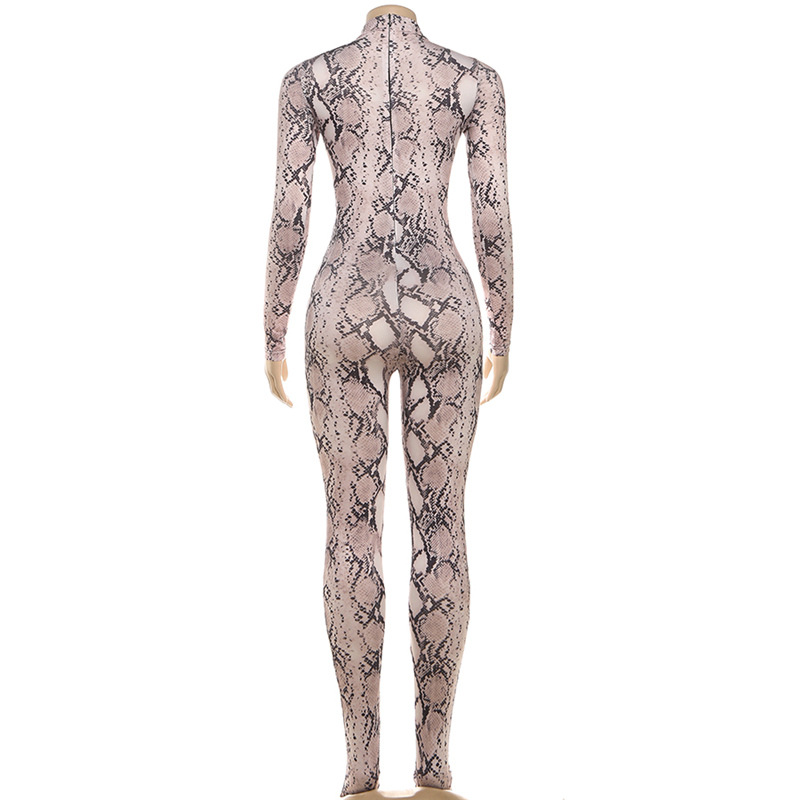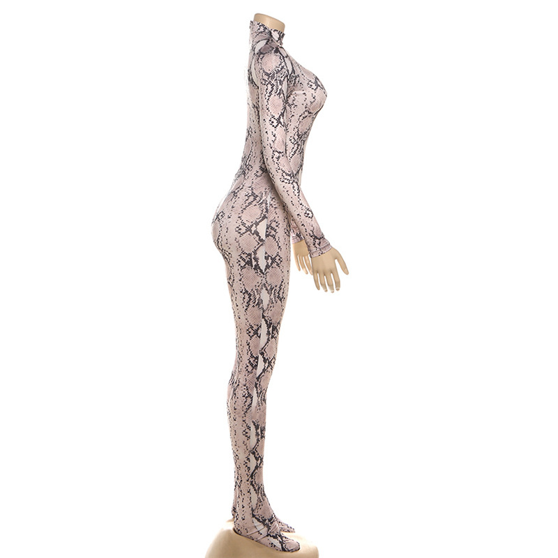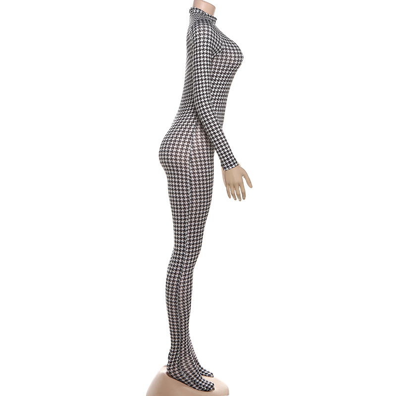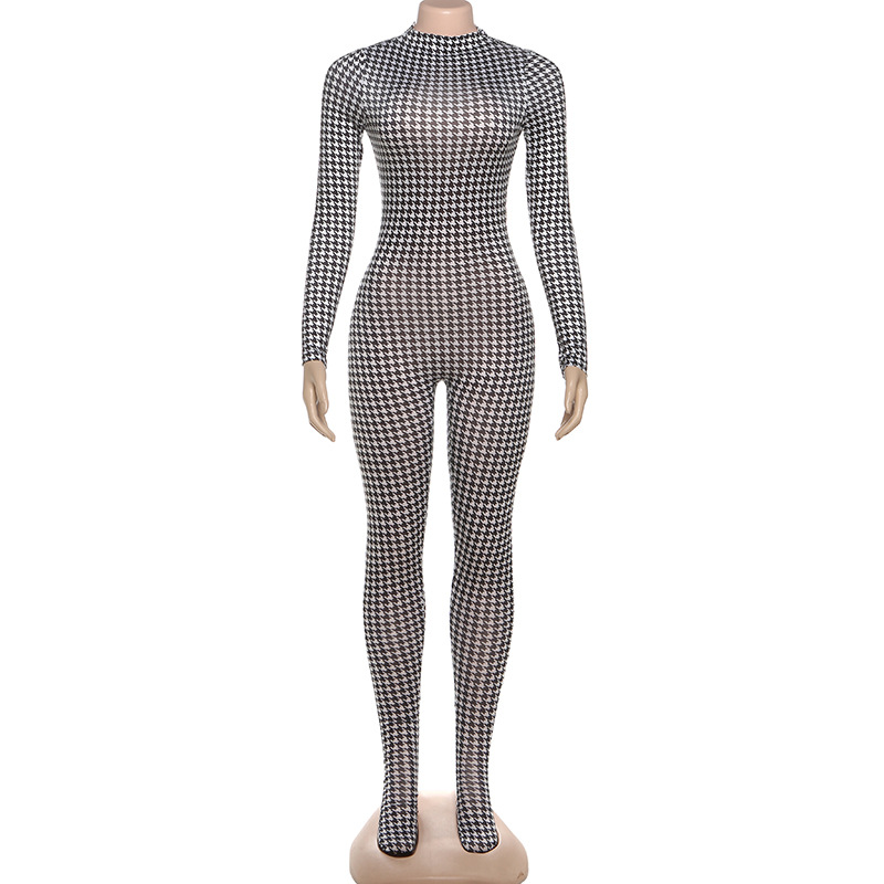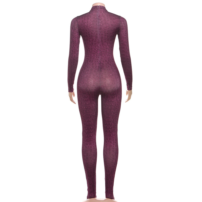 European And American Style Fashion Printed High-neck Long-sleeve Sexy High-waist Slim Jumpsuit