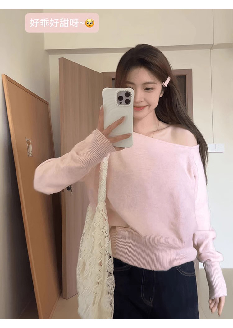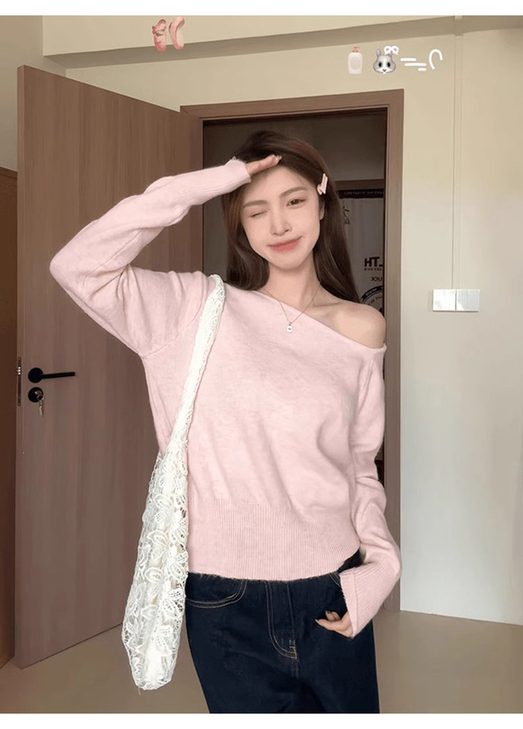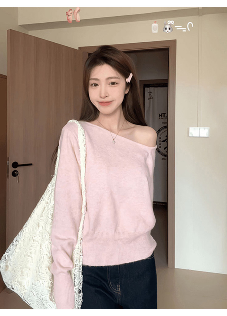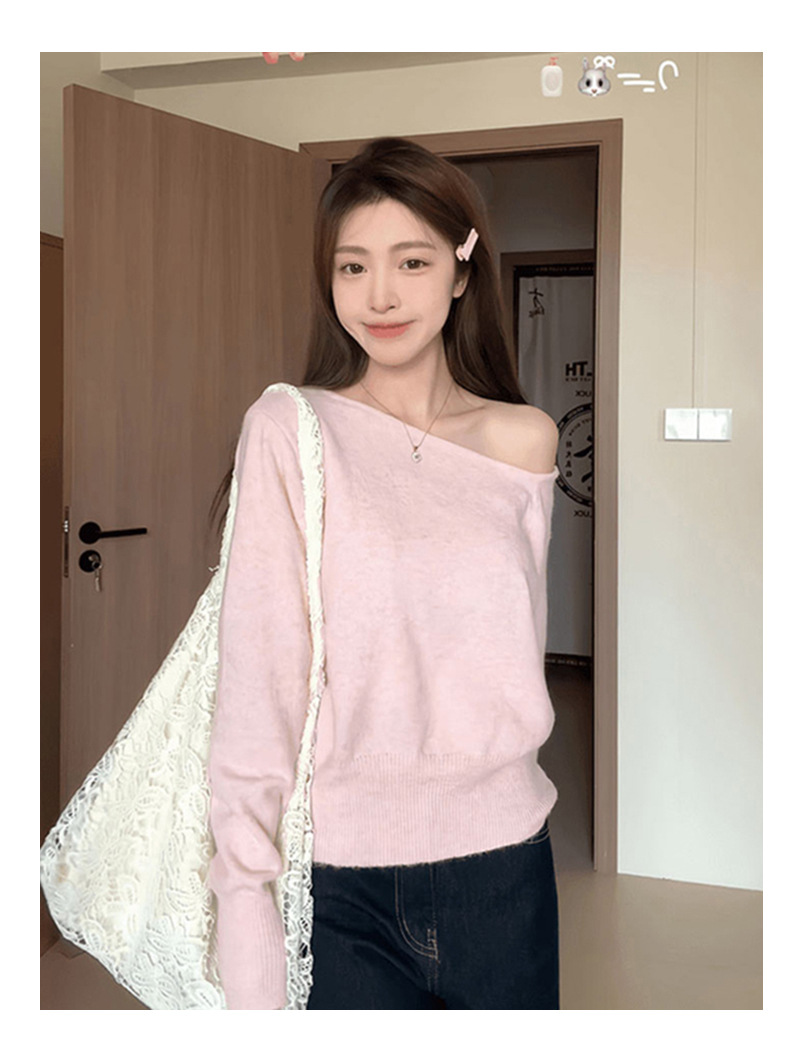 Fashion Korean-style Off-shoulder Top Versatile Temperament Sweater