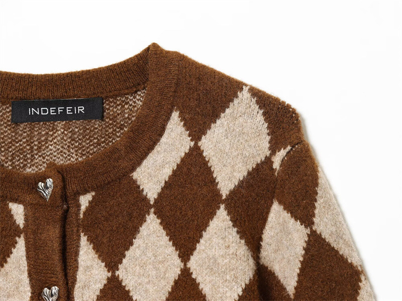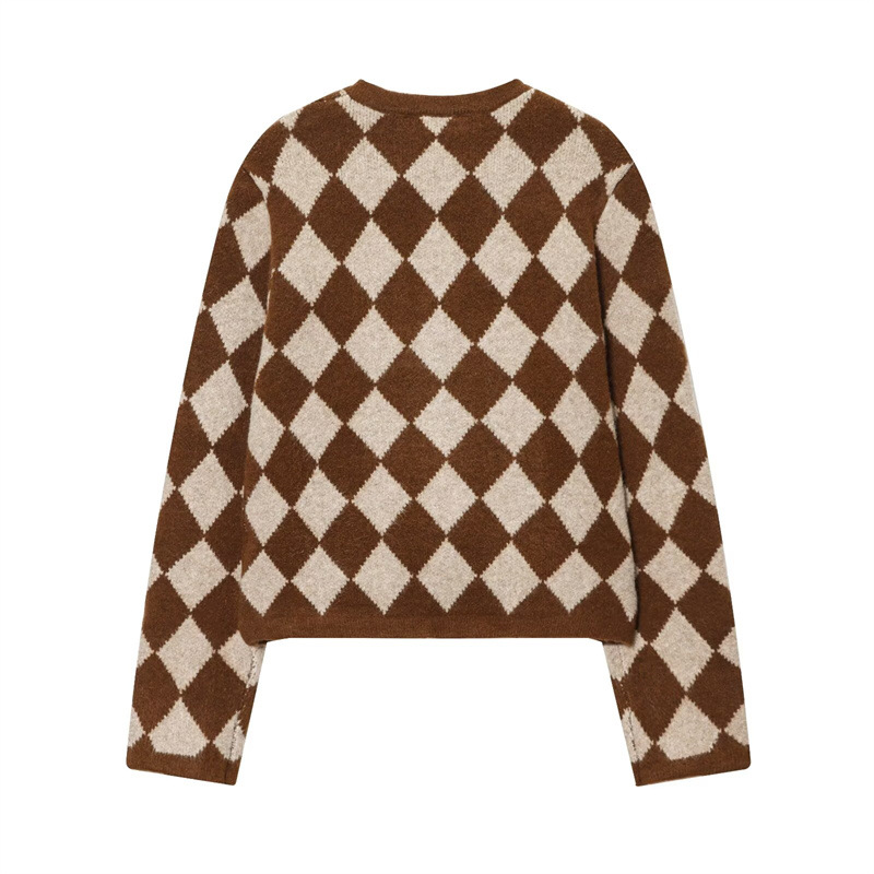Fashion Temperament Women's Clothing Wholesale Diamond Jacquard Knitted Coat