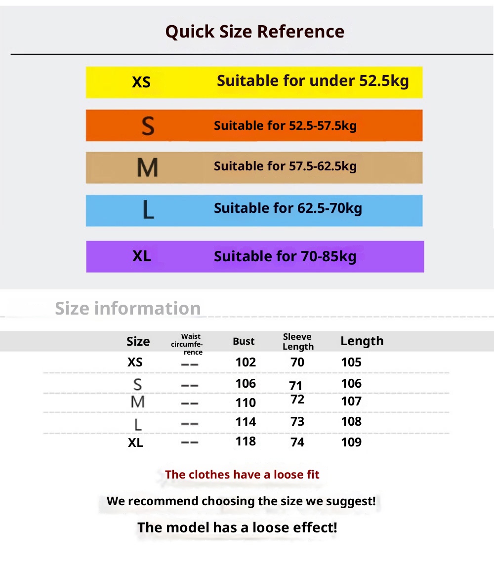1. Asian sizes are 1 to 2 sizes smaller than European and American people. Choose the larger size if your size between two sizes. Please allow 2-3cm differences due to manual measurement. 2. Please check the size chart carefully before you buy the item, if you don't know how to choose size, please contact our customer service. 3.As you know, the different computers display colors differently, the color of the actual item may vary slightly from the following images.