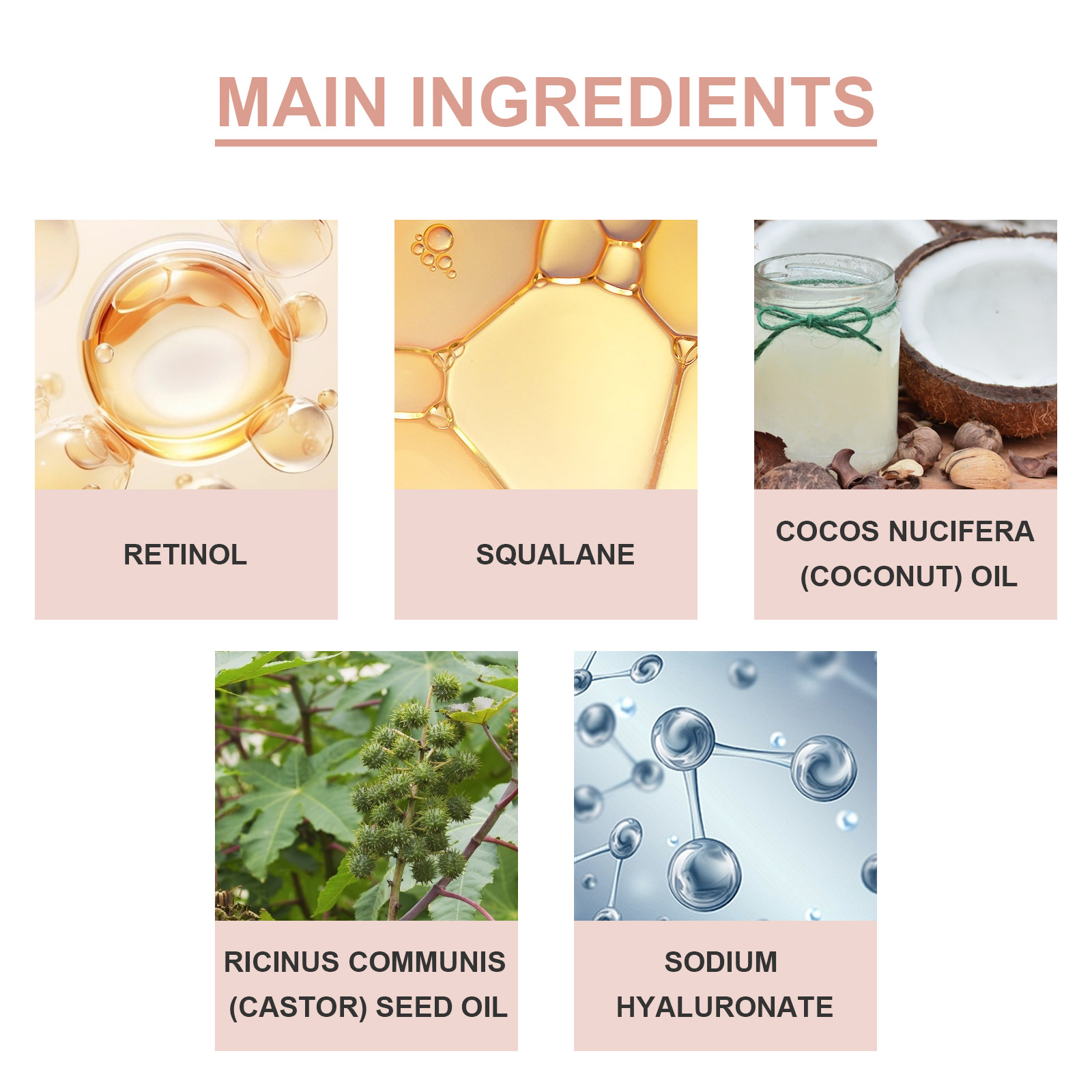 Our Retinol Eye Stick contains Retinol, Squalane, Cocos Nucifera (Coconut) Oil. It can help reduce fine lines around the eyes, promote smooth and delicate skin surface, and keep the skin around the eyes hydrated, reduce eye dryness and improve skin texture, making skin softer. Its application is simple: wash and dry the skin, start from the outer edge of the eye in small circular motions, then apply the cream under the eye, then apply it above and around the eyelid and massage until absorbed. It can help improve skin elasticity and firmness, making skin look young and vibrant.