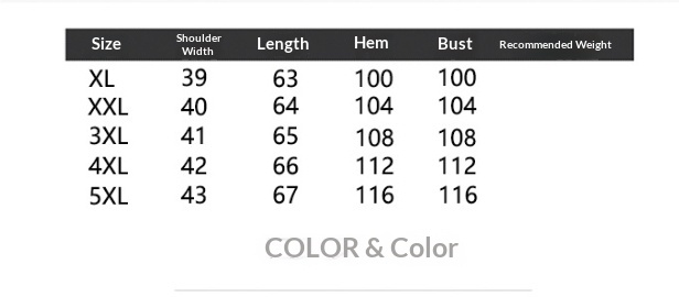 Size: XL, 2XL, 3XL, 4XL, 5XL