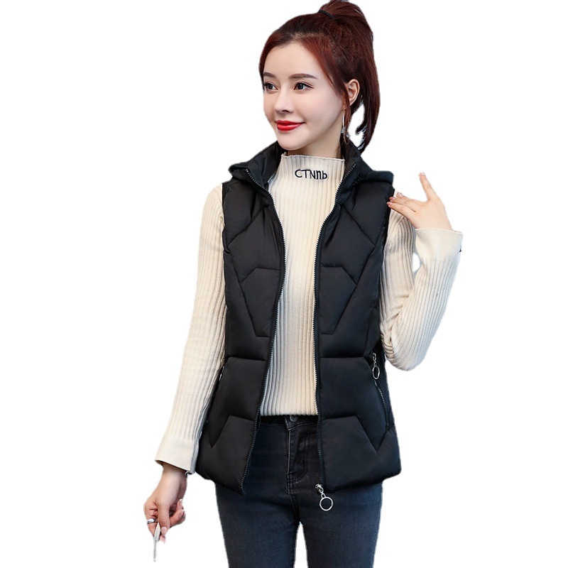 Ladies' Fashion Down Cotton Vest Short Mom Hooded Wear Warm Vest