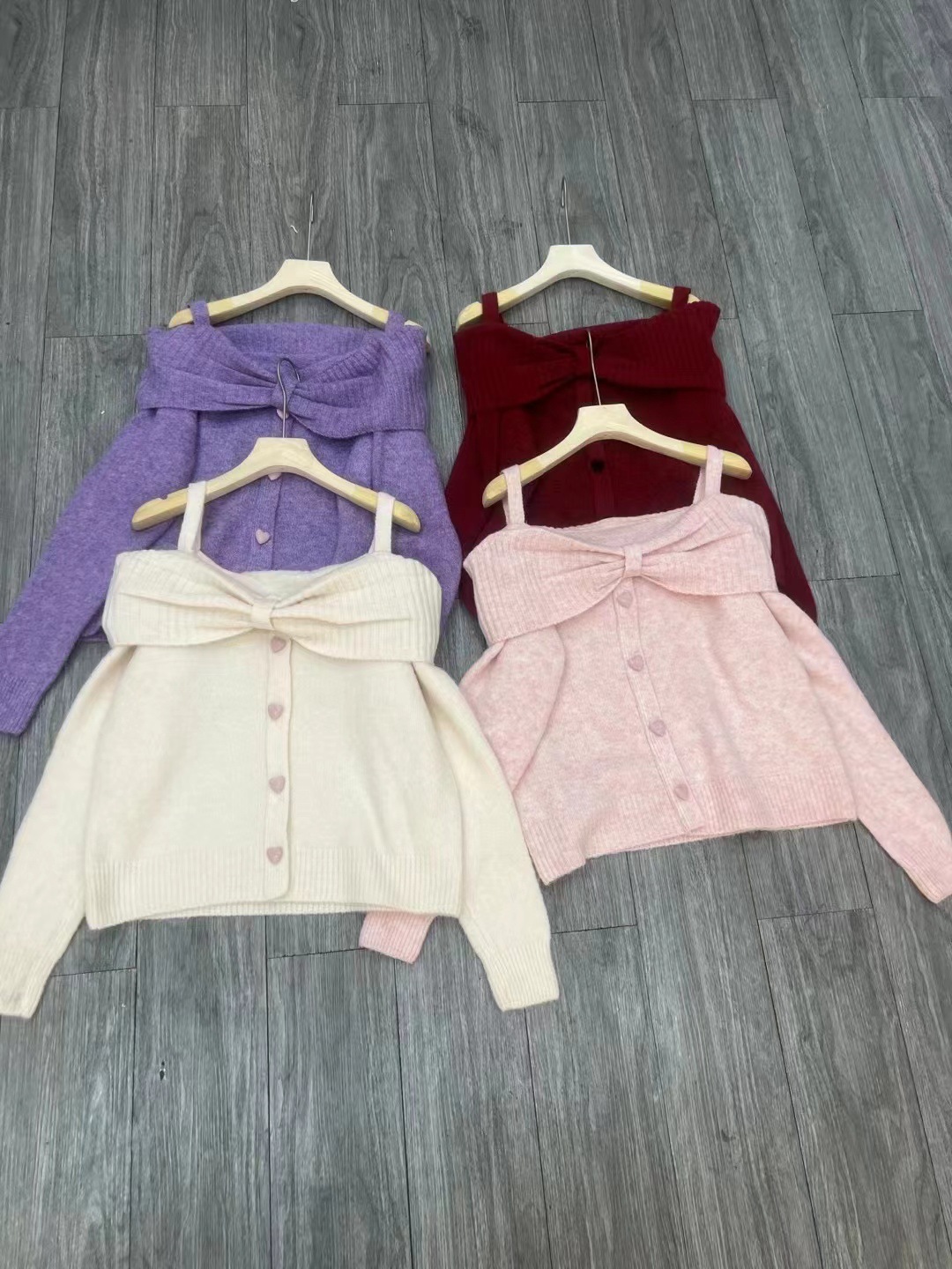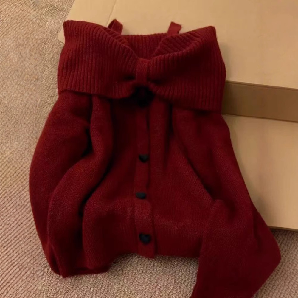 Lady's Long-sleeve Off-shoulder Gentle Style Knitted Sweater