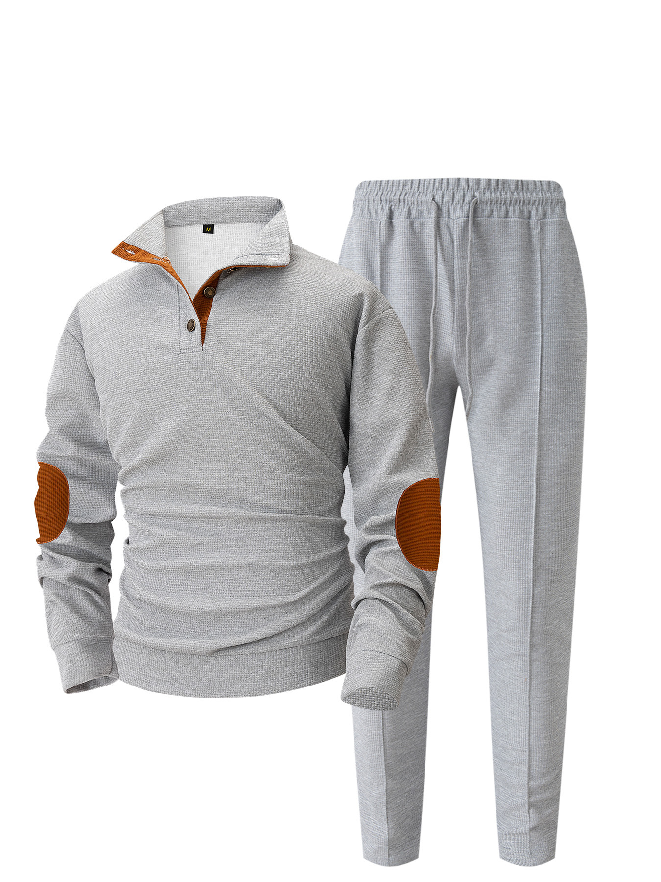 Men's Half-Zip Waffle Casual Stand Collar Long Sleeve Sweatshirt Set