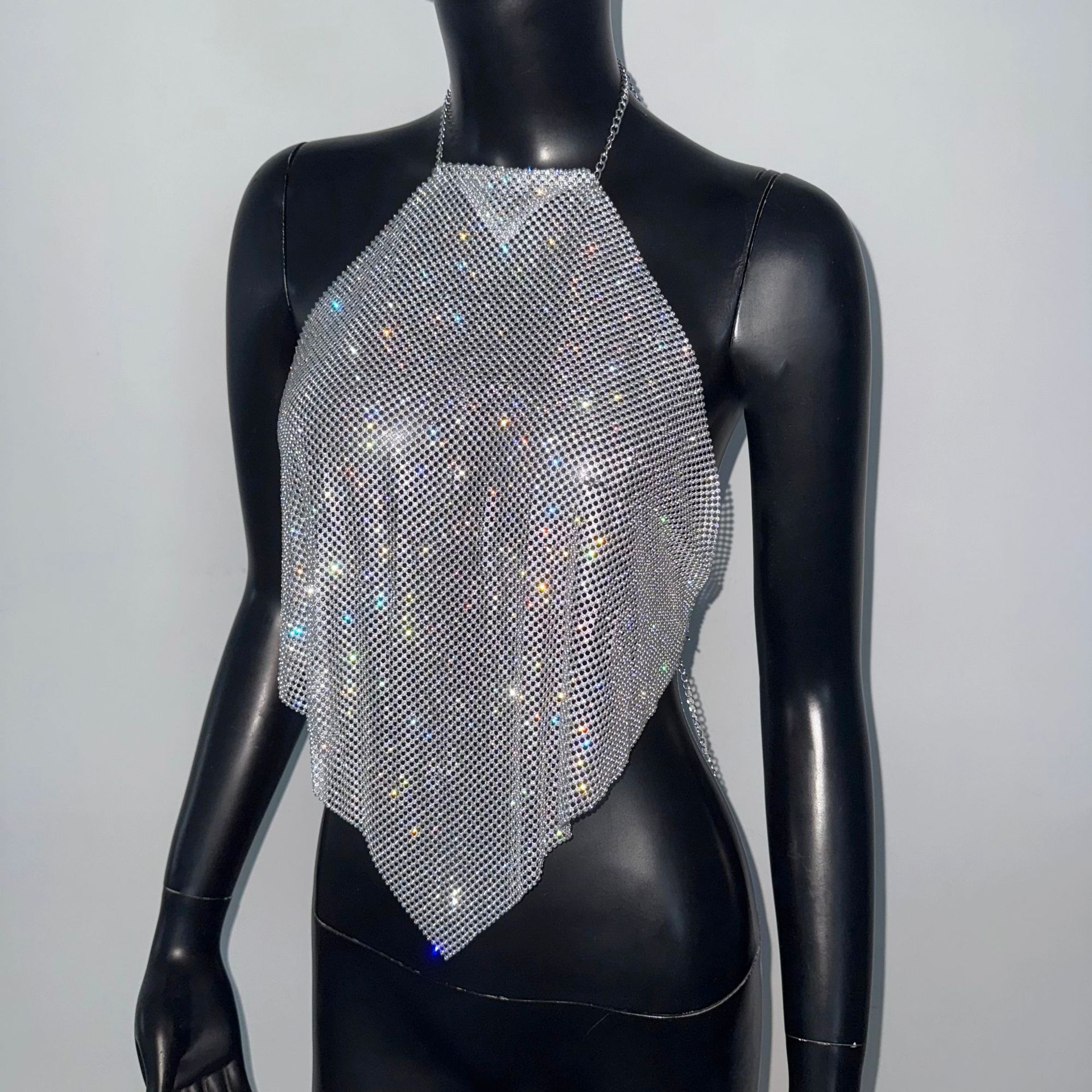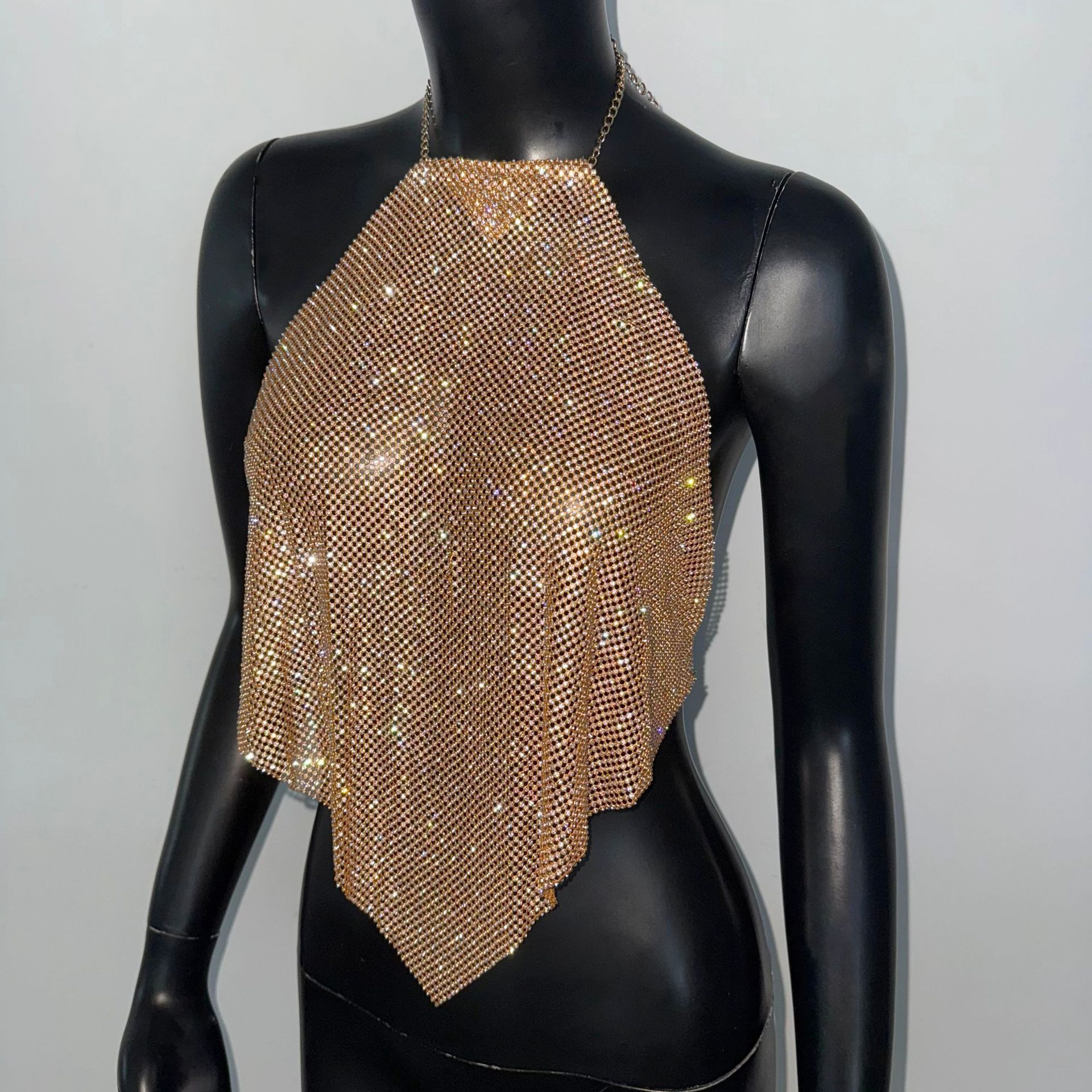 Metal Sequins Full Diamond Camisole Party Hot Girl Halter Vest