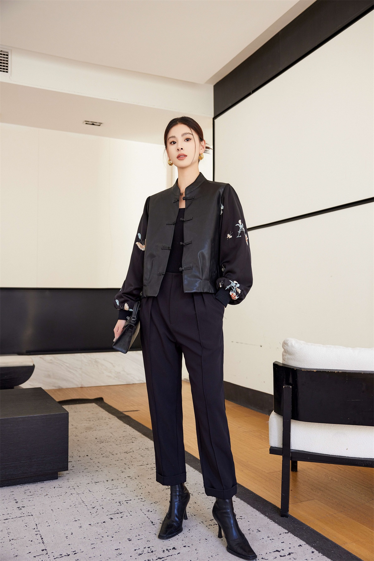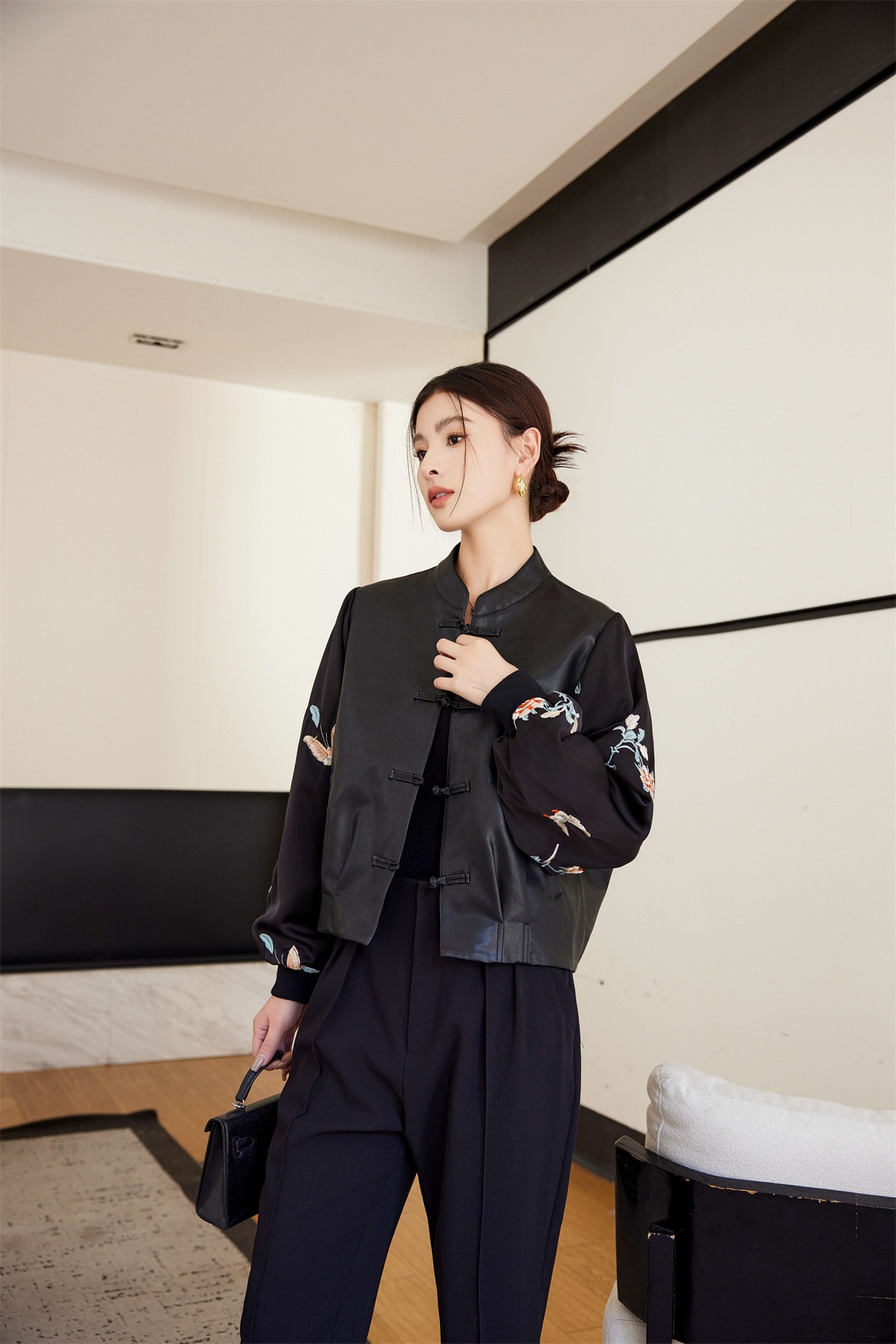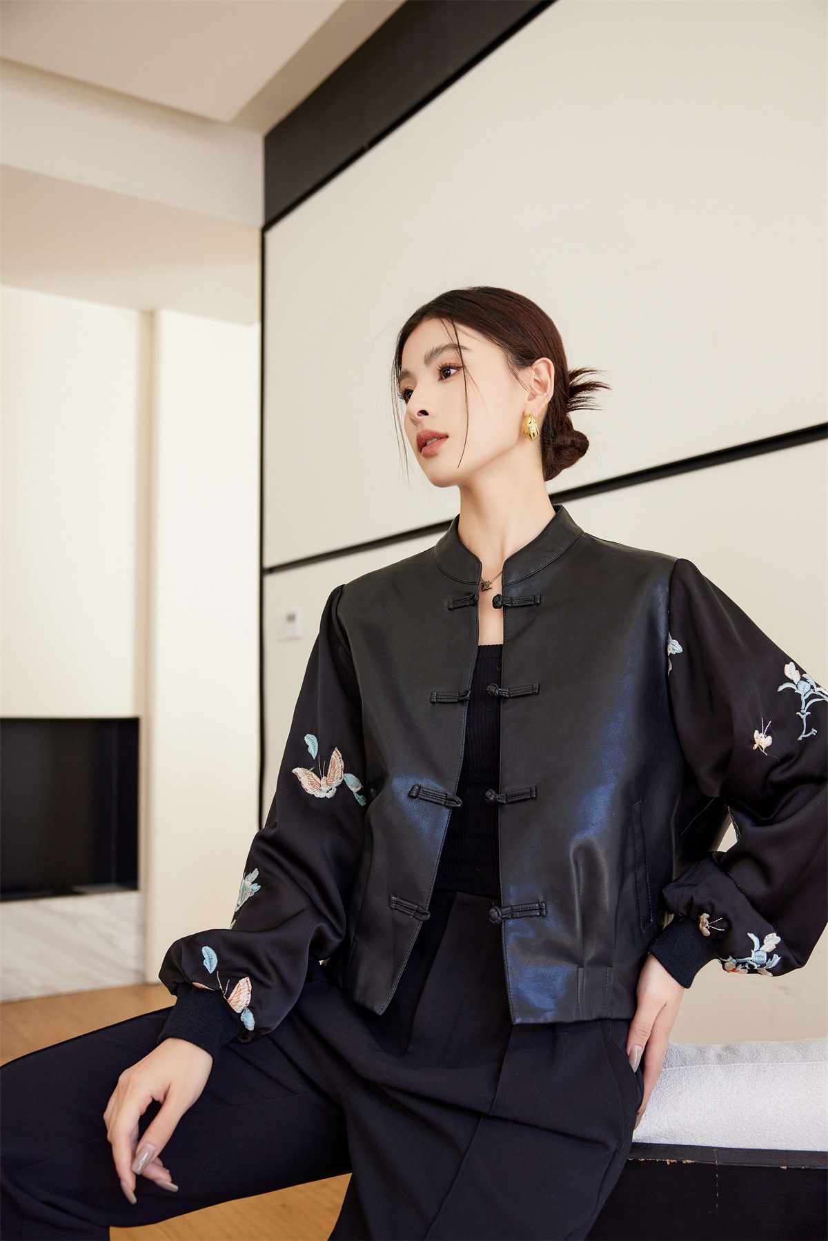 New Chinese Style Stitching Leather Coat Women's Retro Women's