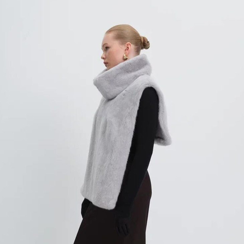 New Solid Color Half Turtleneck Sleeveless Fur Vest For Women