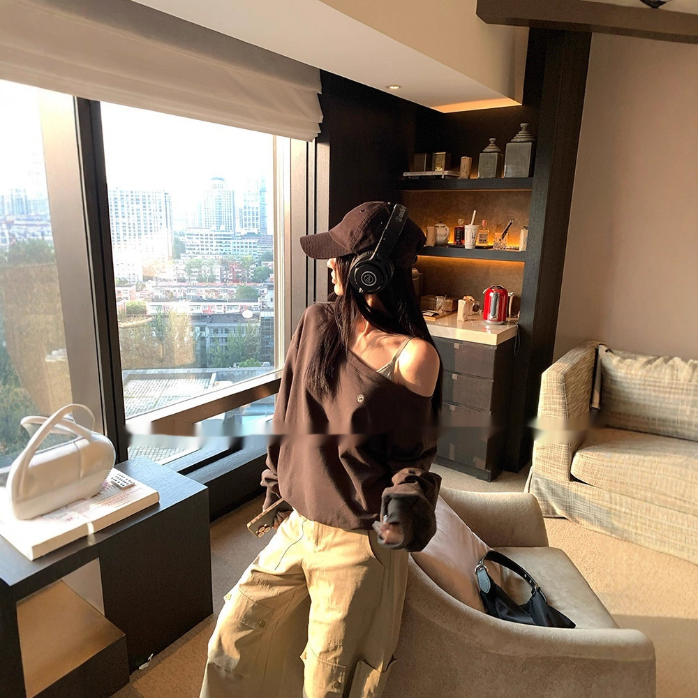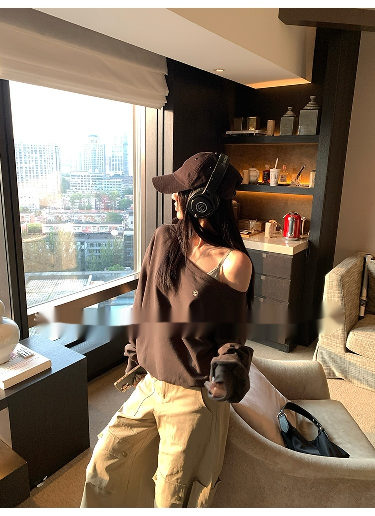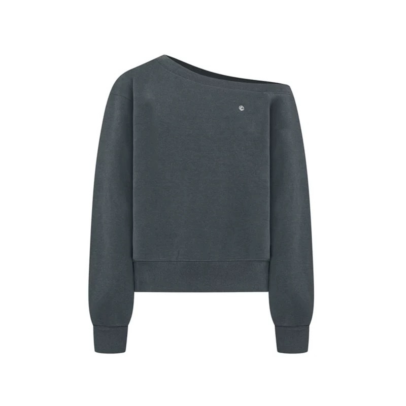 Off-the-shoulder Small Icon Loose Pullover Sweatershirt