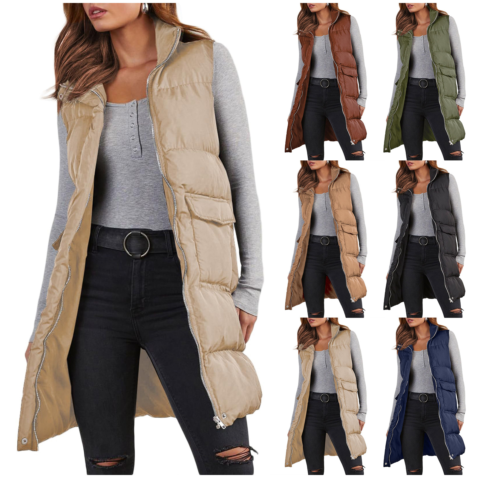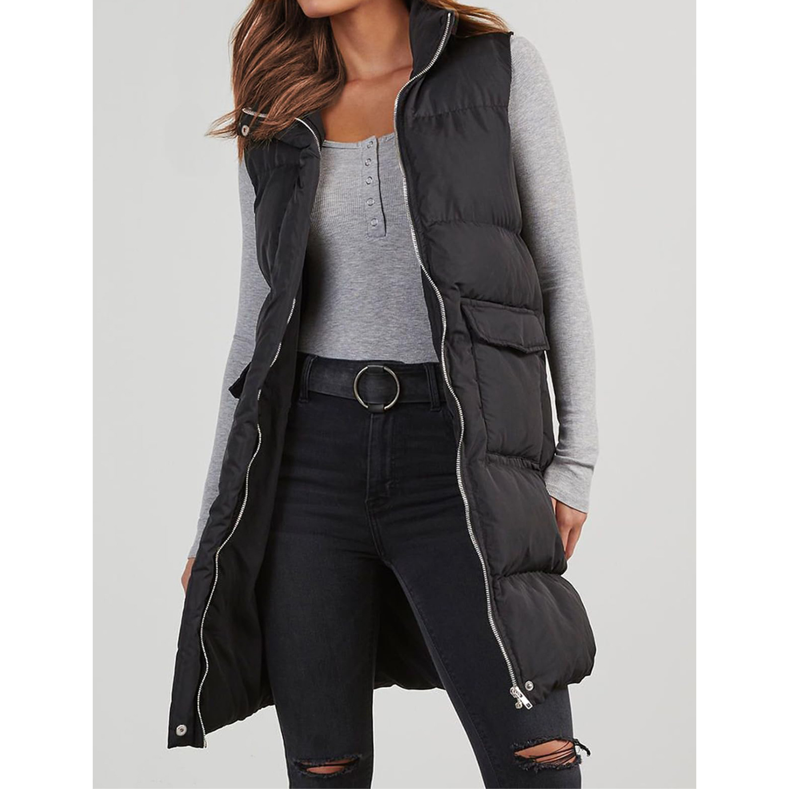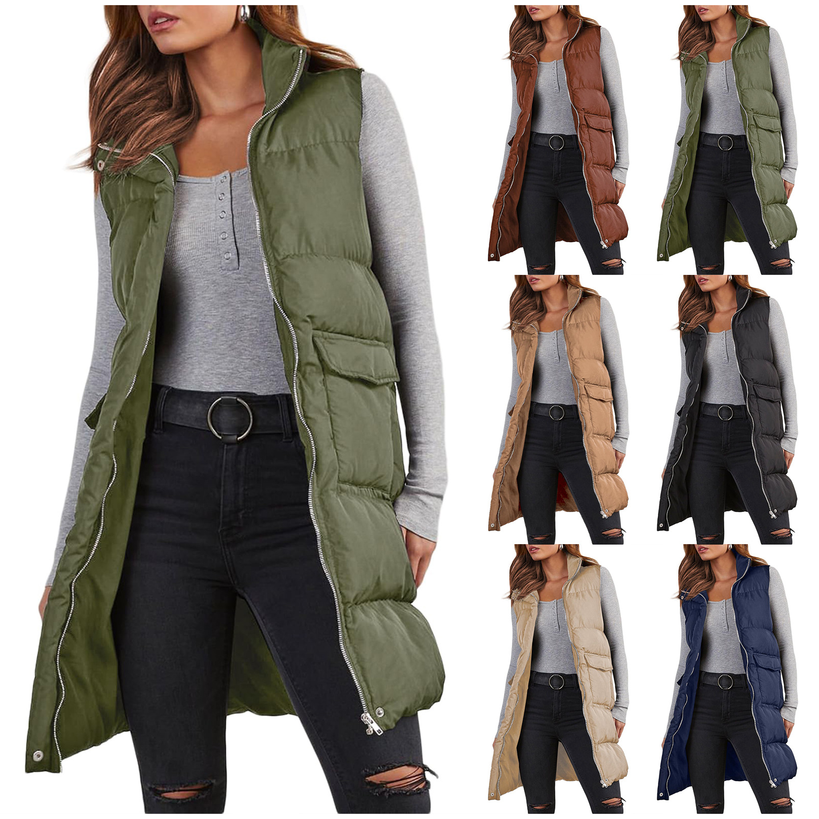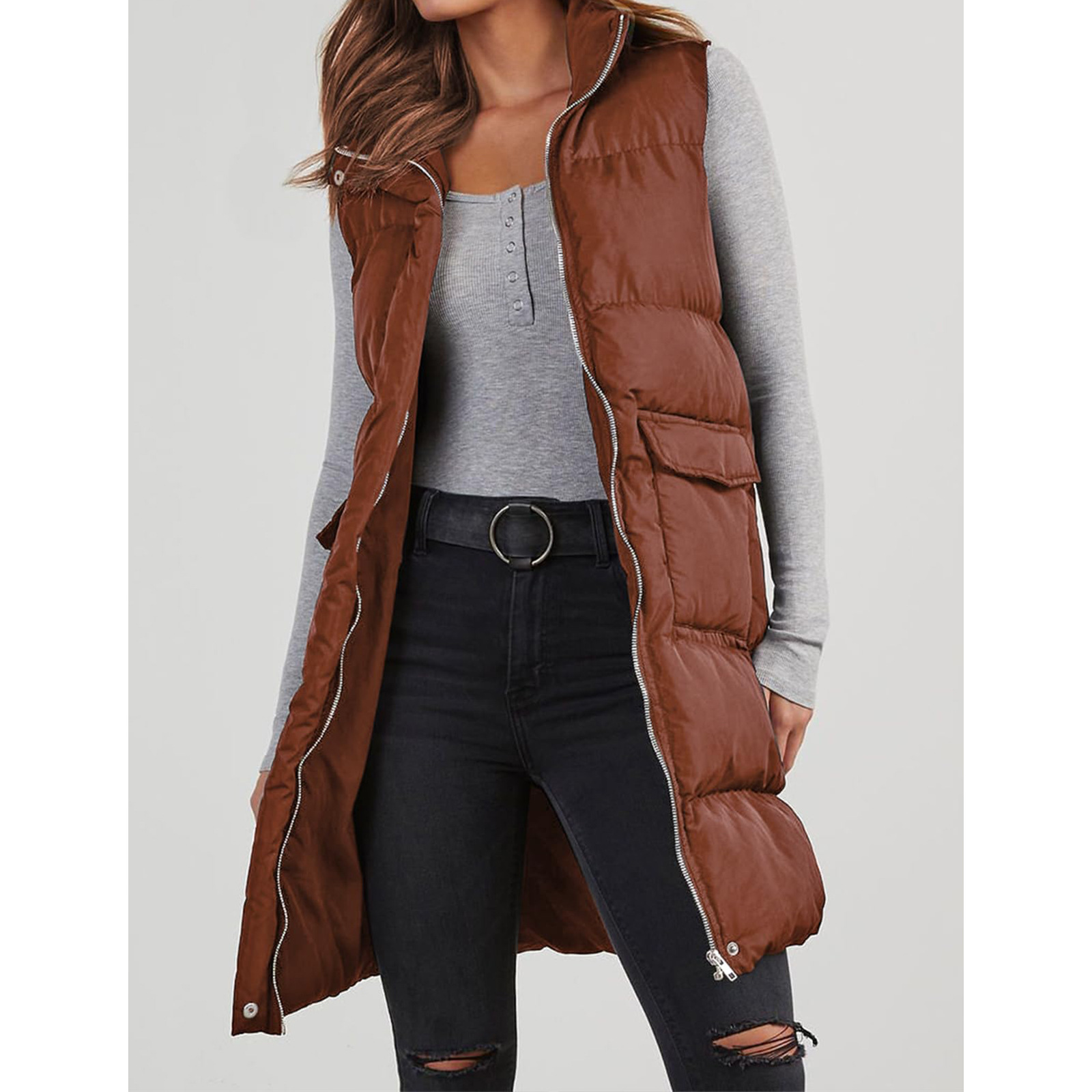 Polyester Hooded Single-breasted Mid-length Cotton Clothing Vest