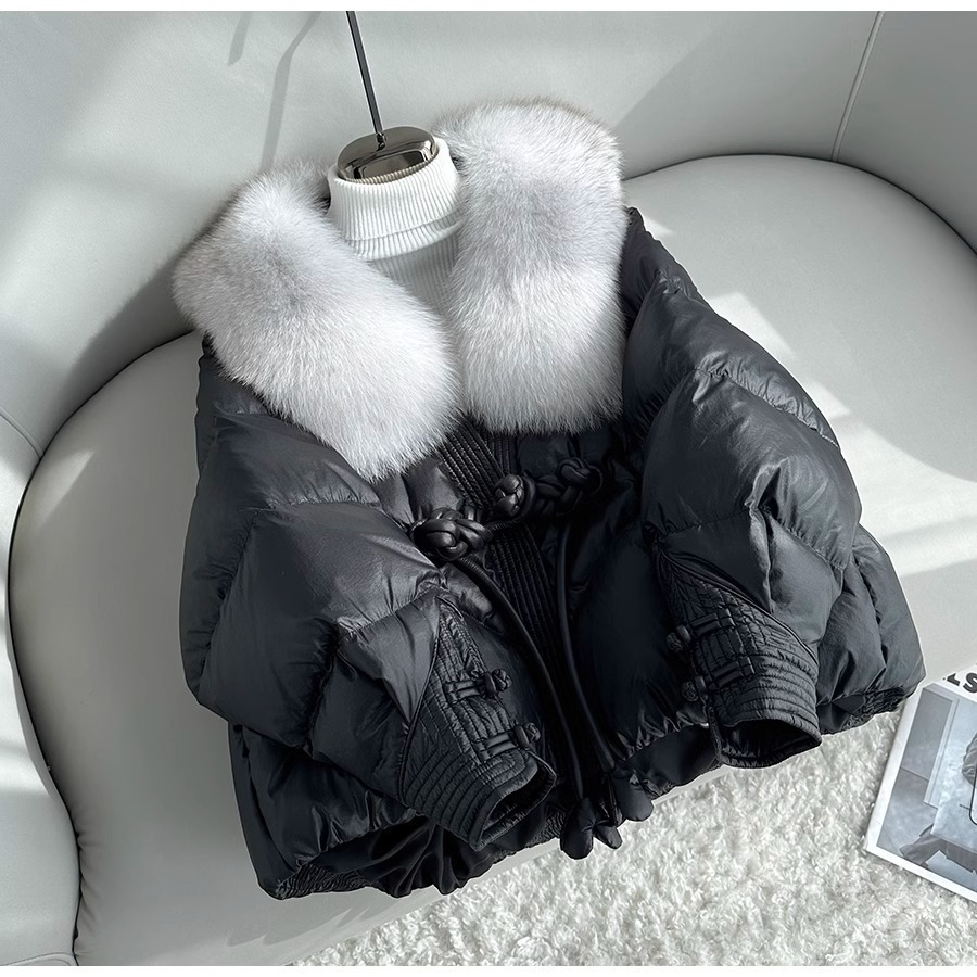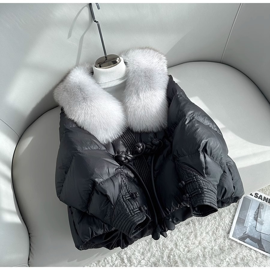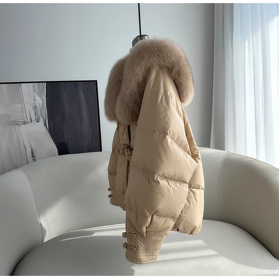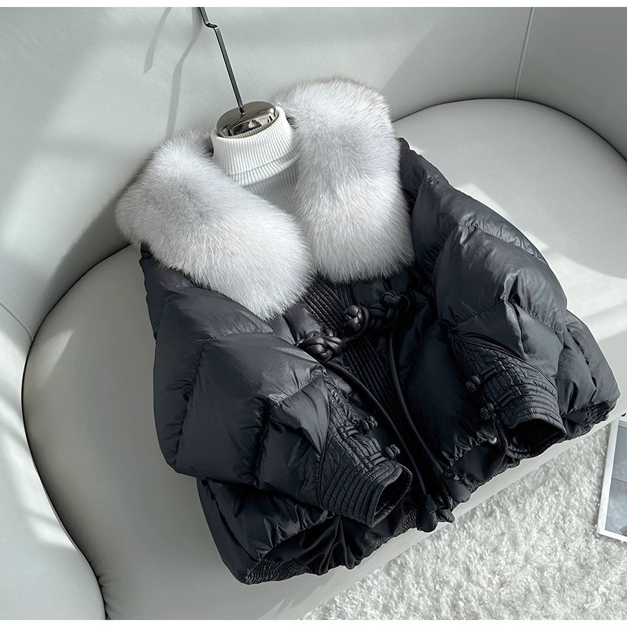 Polyester Women's Loose Thick Cotton Coat With Fur Collar