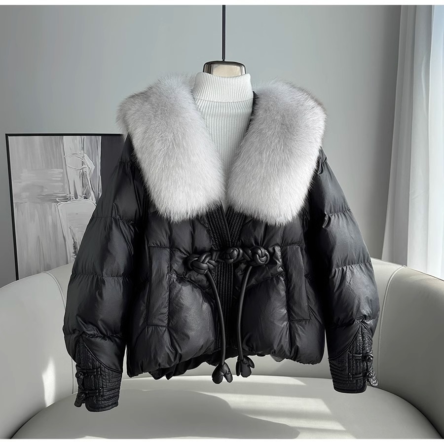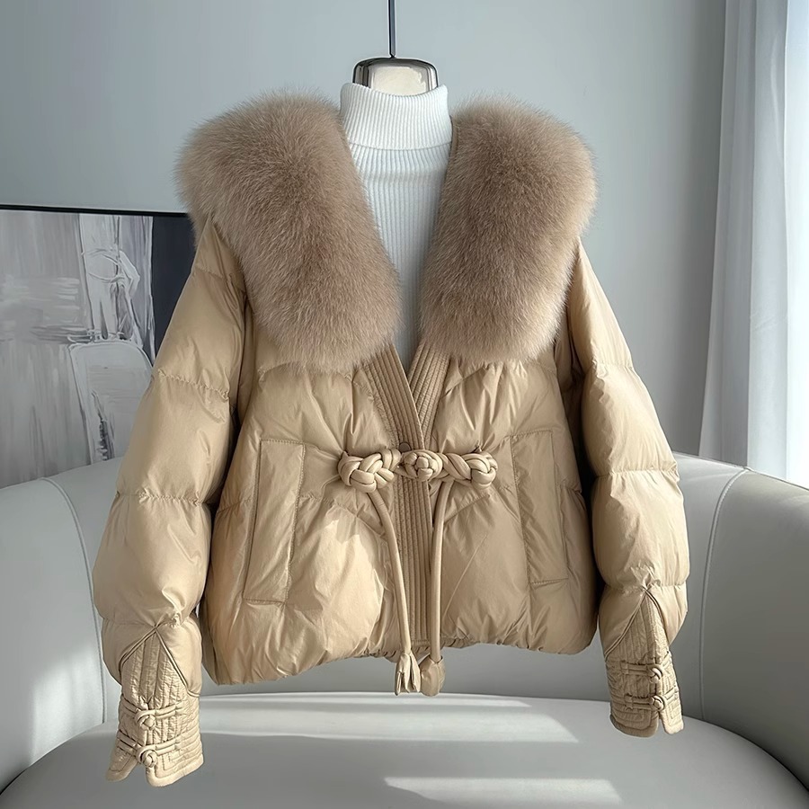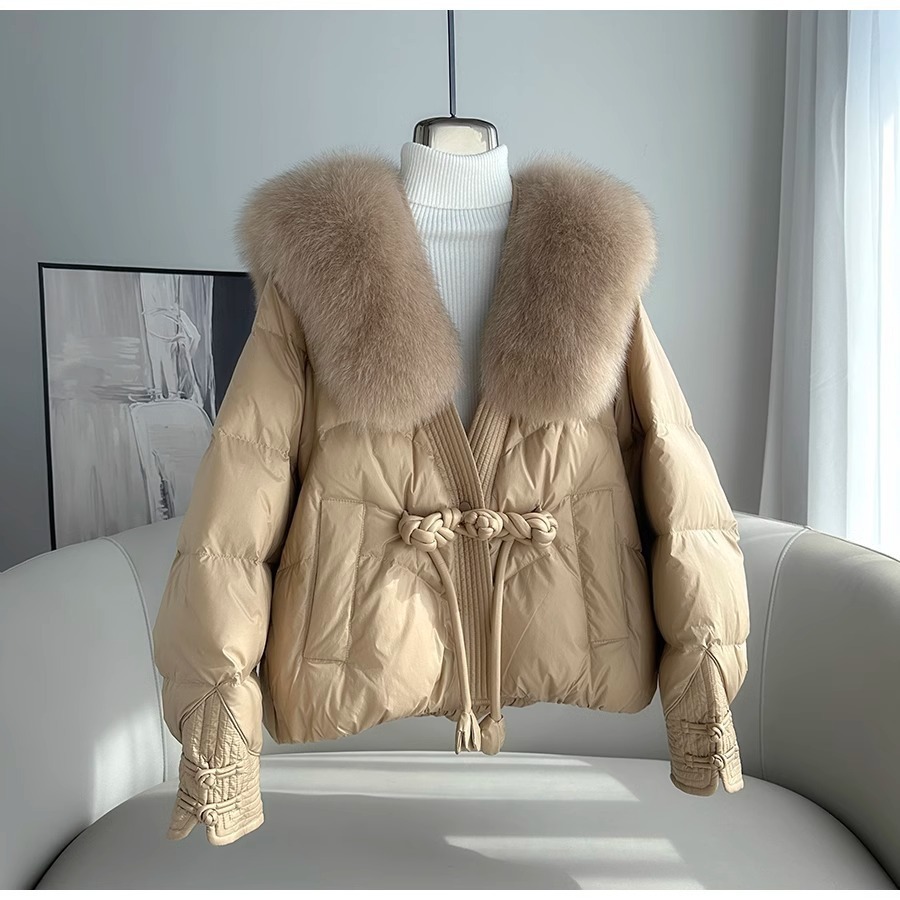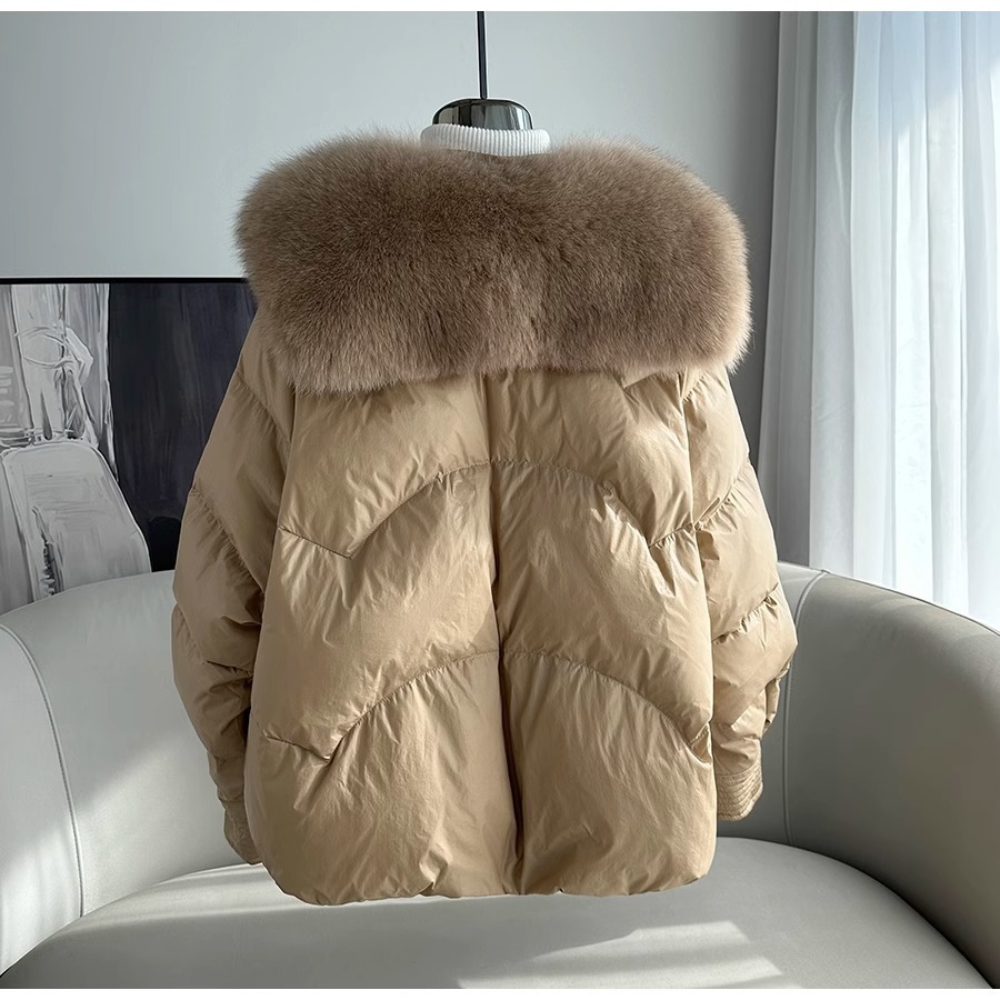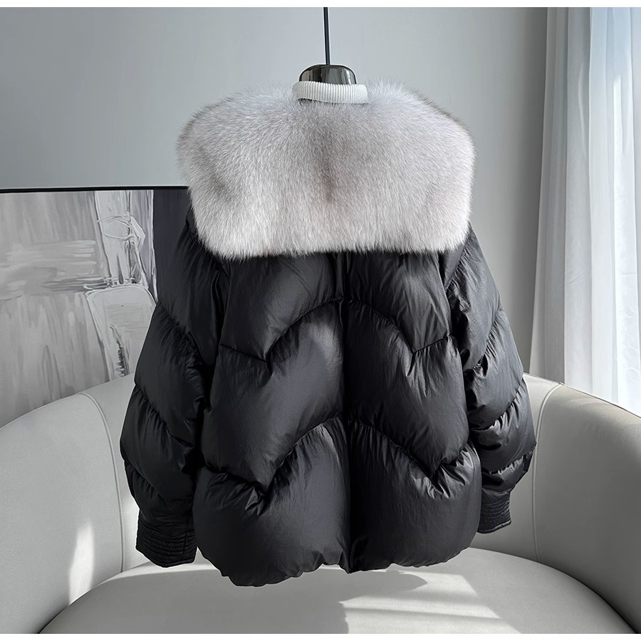 Polyester Women's Loose Thick Cotton Coat With Fur Collar