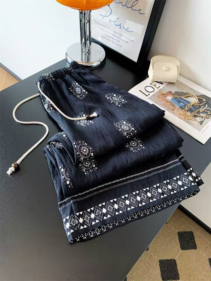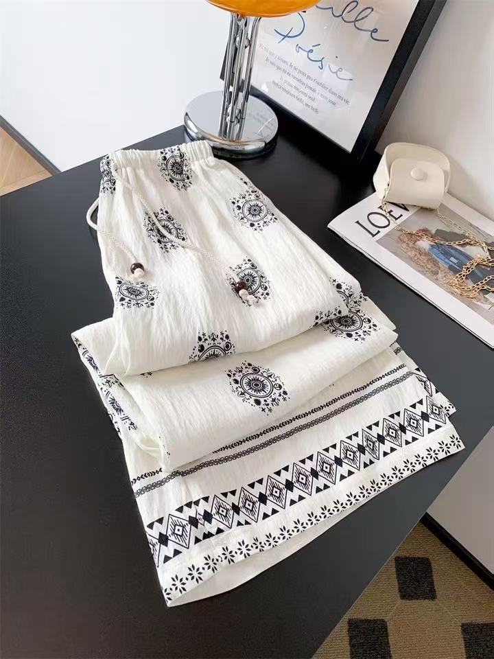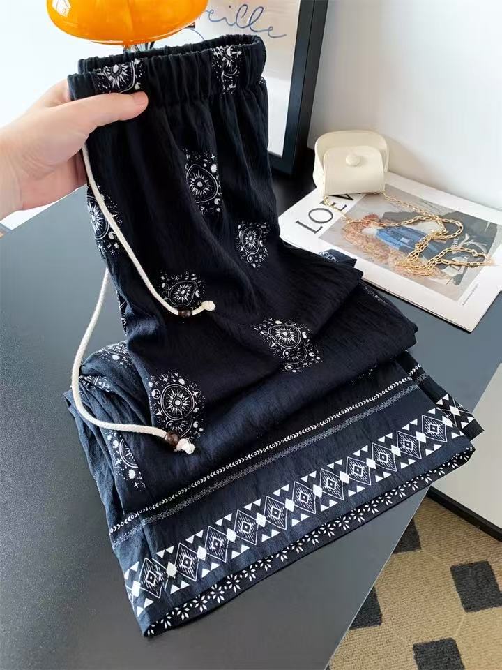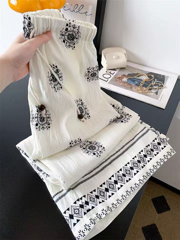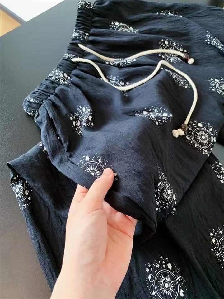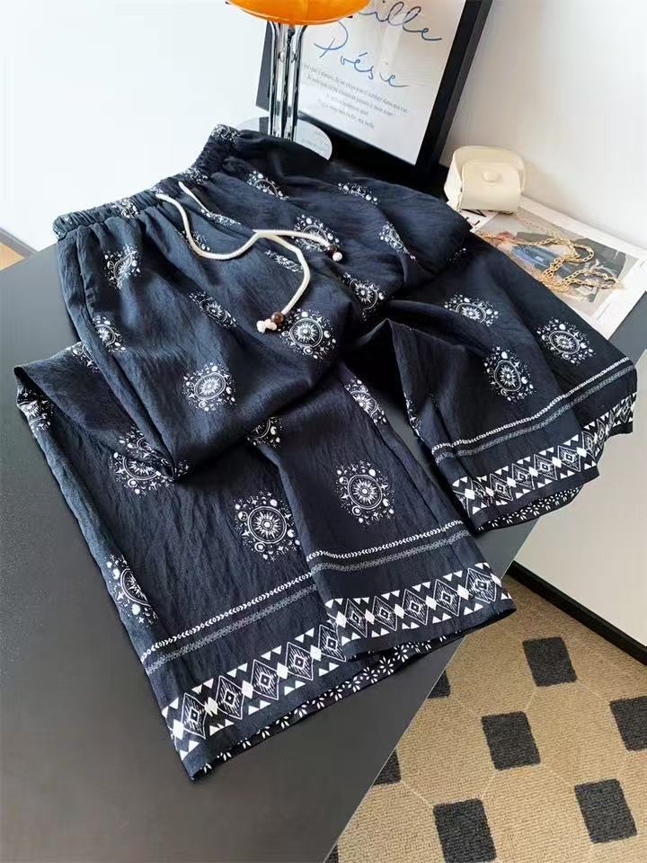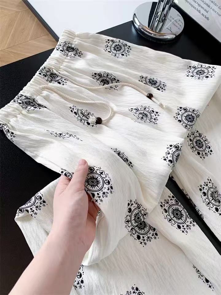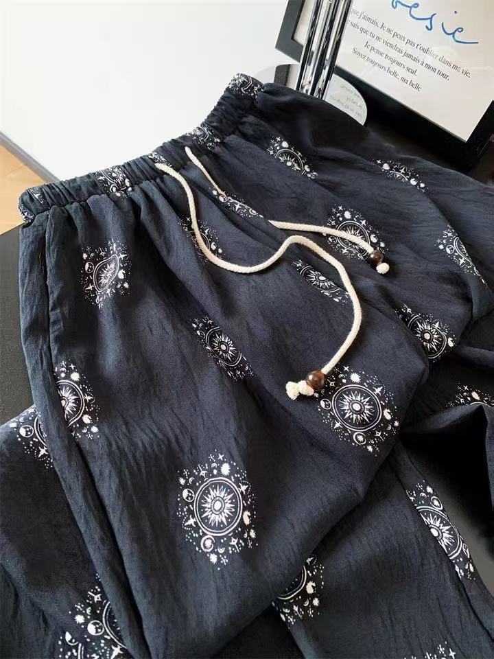 Retro Beaded Drawstring Women's Summer Cool Wide-leg Pants