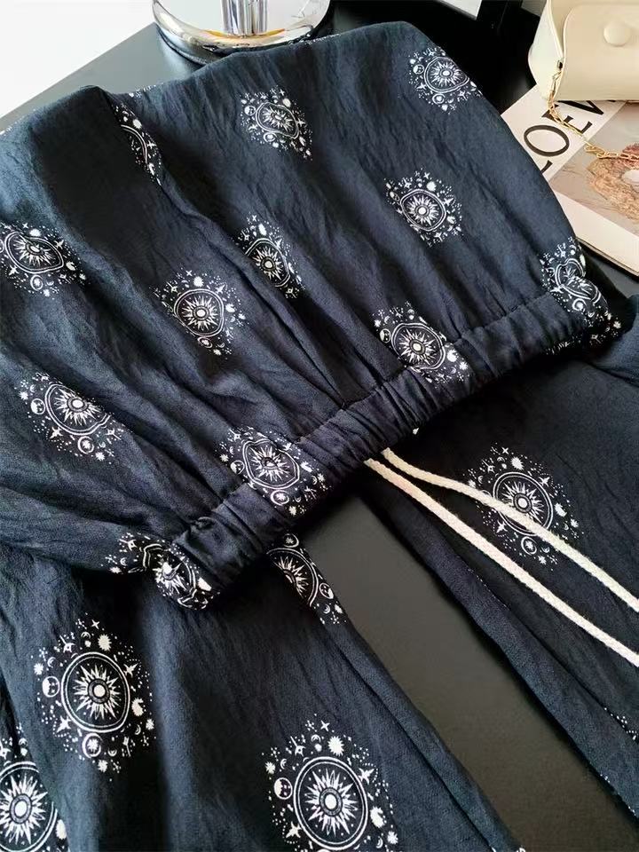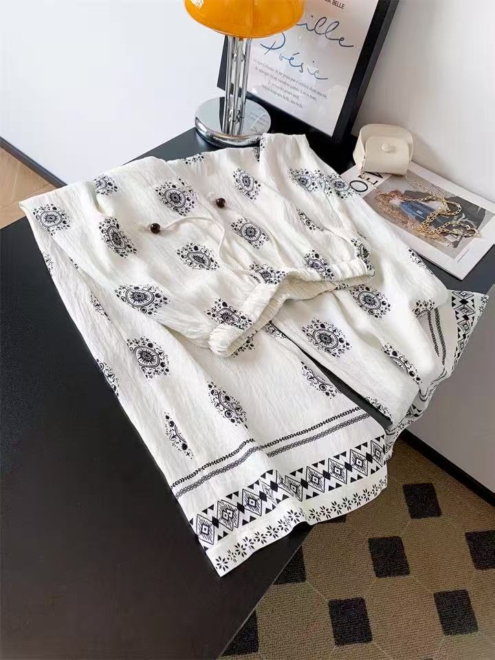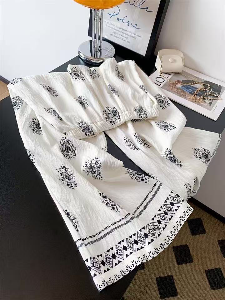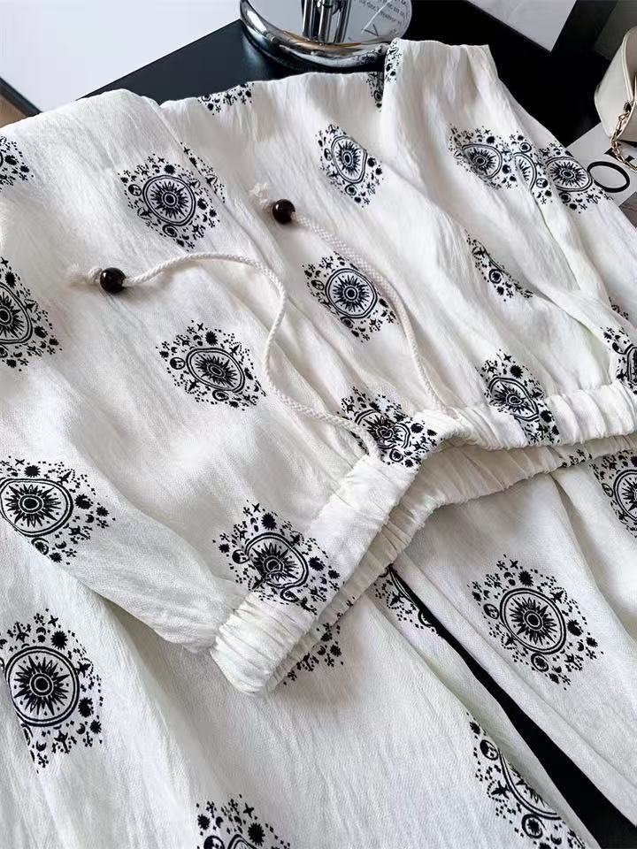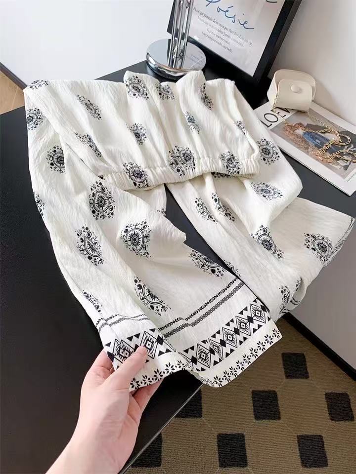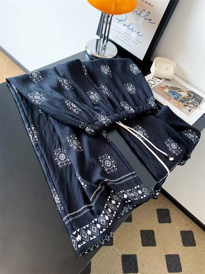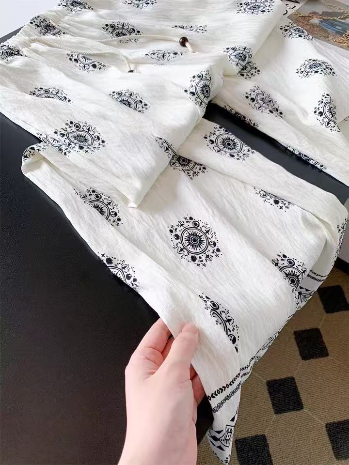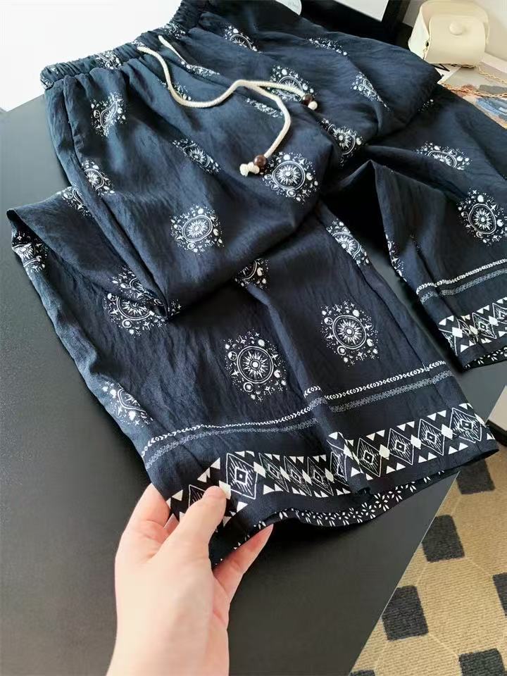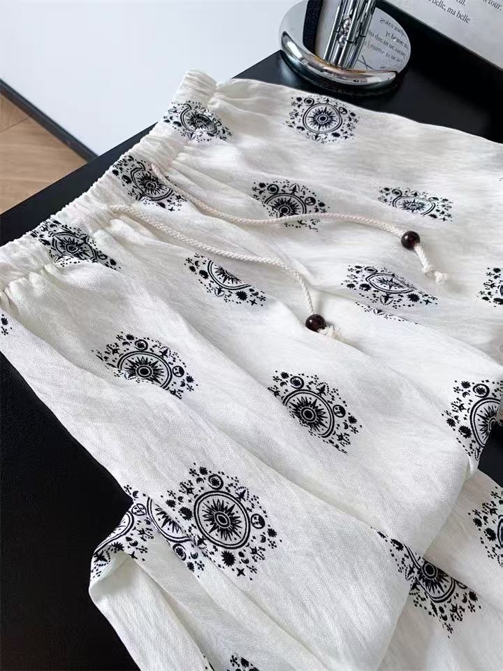 Retro Beaded Drawstring Women's Summer Cool Wide-leg Pants