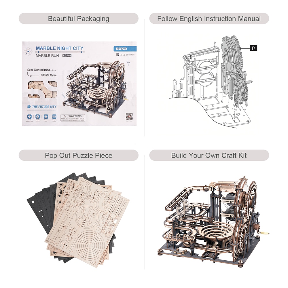 Robotime ROKR Marble Night City 3D Wooden Puzzle Games Assembly Waterwheel Model Toys For Children Kids Birthday Gift