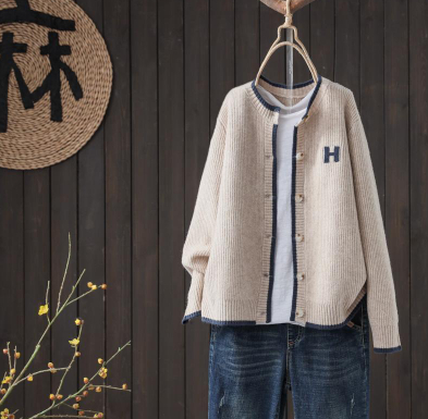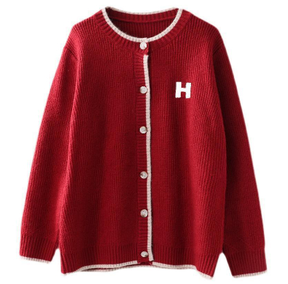 Round Neck Single-breasted Knitted Cardigan Women's Loose Coat