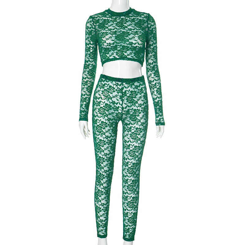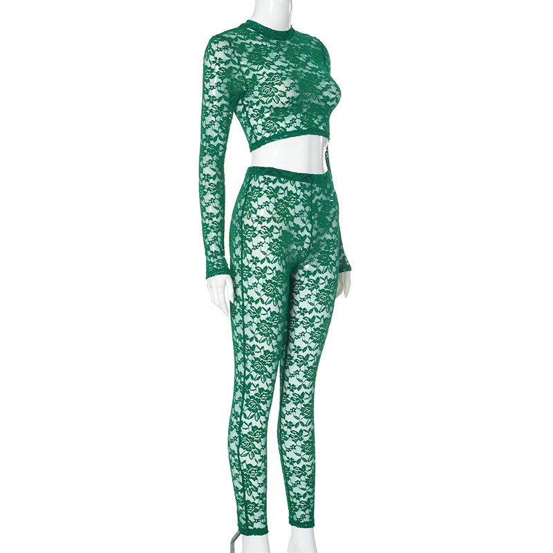 Sexy Lace Long Sleeve Casual Pants Two-piece Set