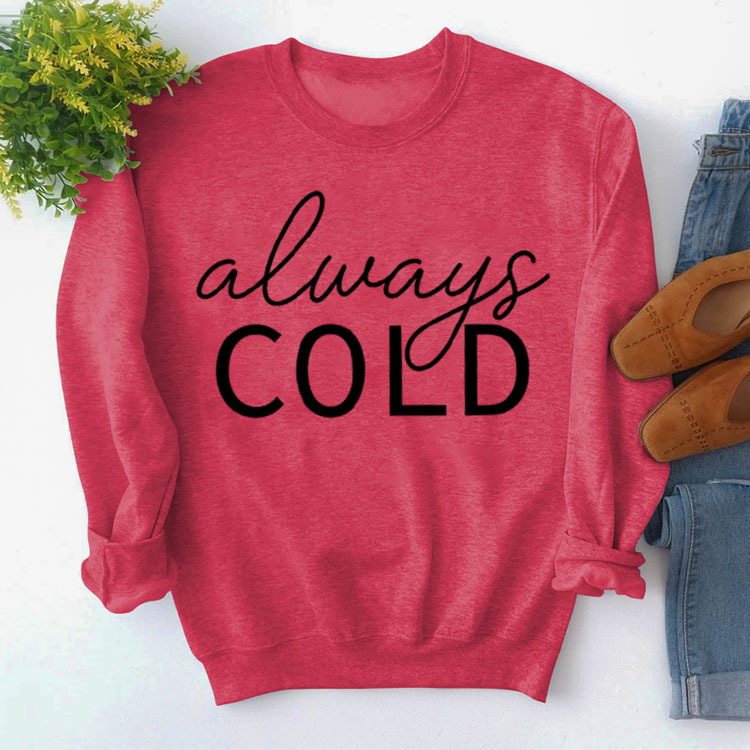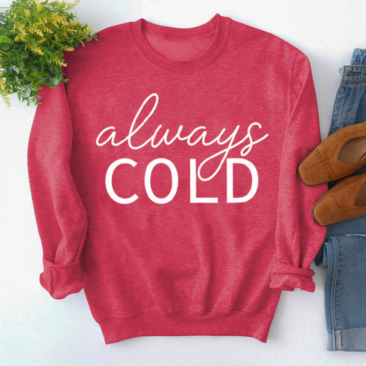 Top Long Sleeve Always Cold Printed Loose Sweatshirt