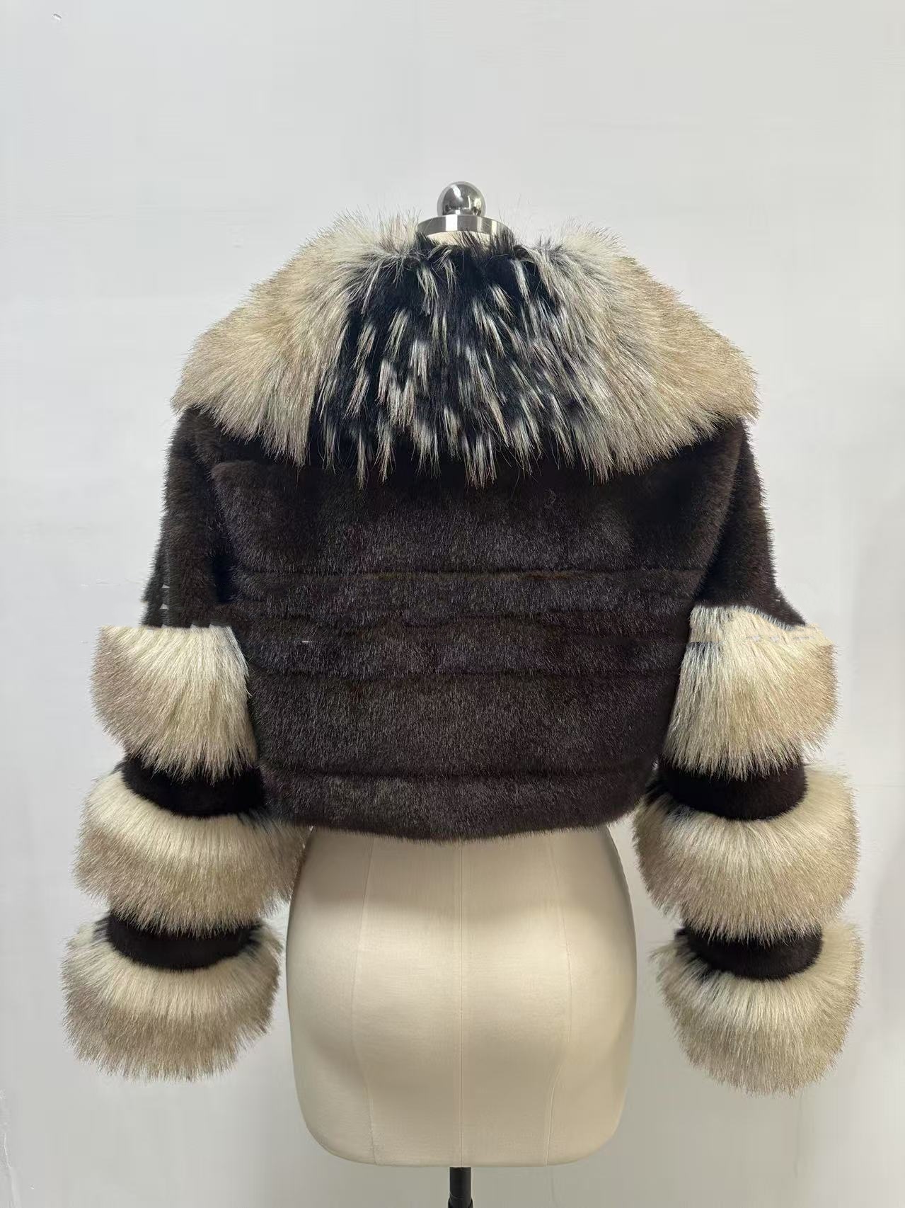 Women's Artificial Fur Environmental Protection Fur Short Lapels Coat