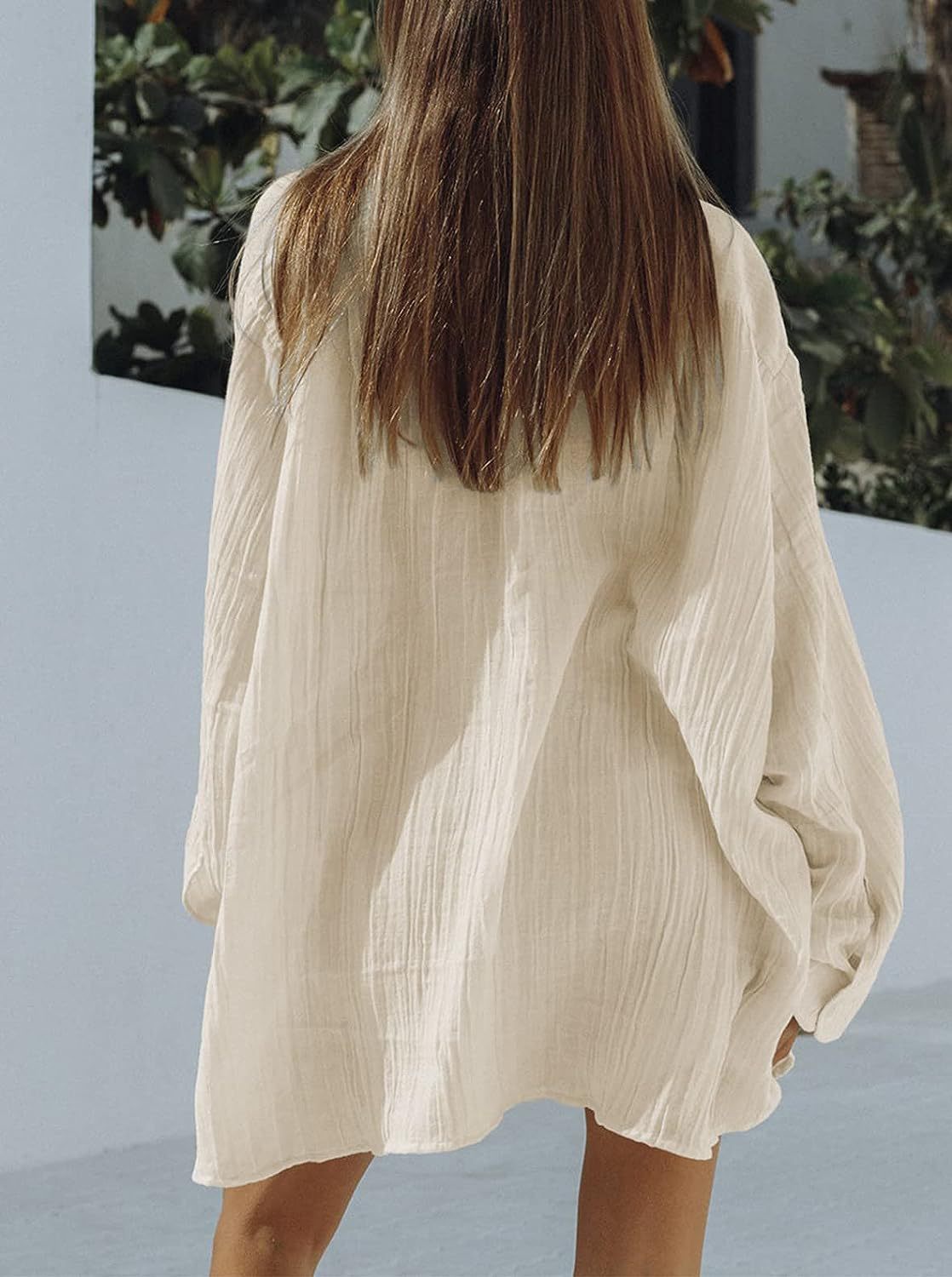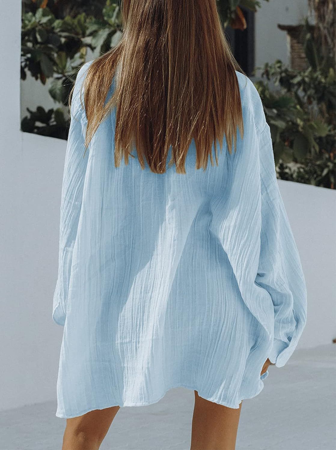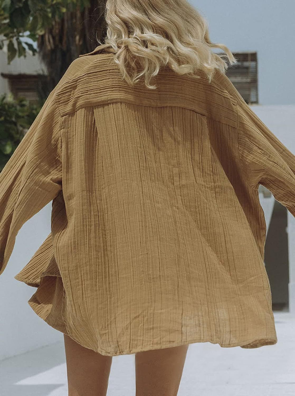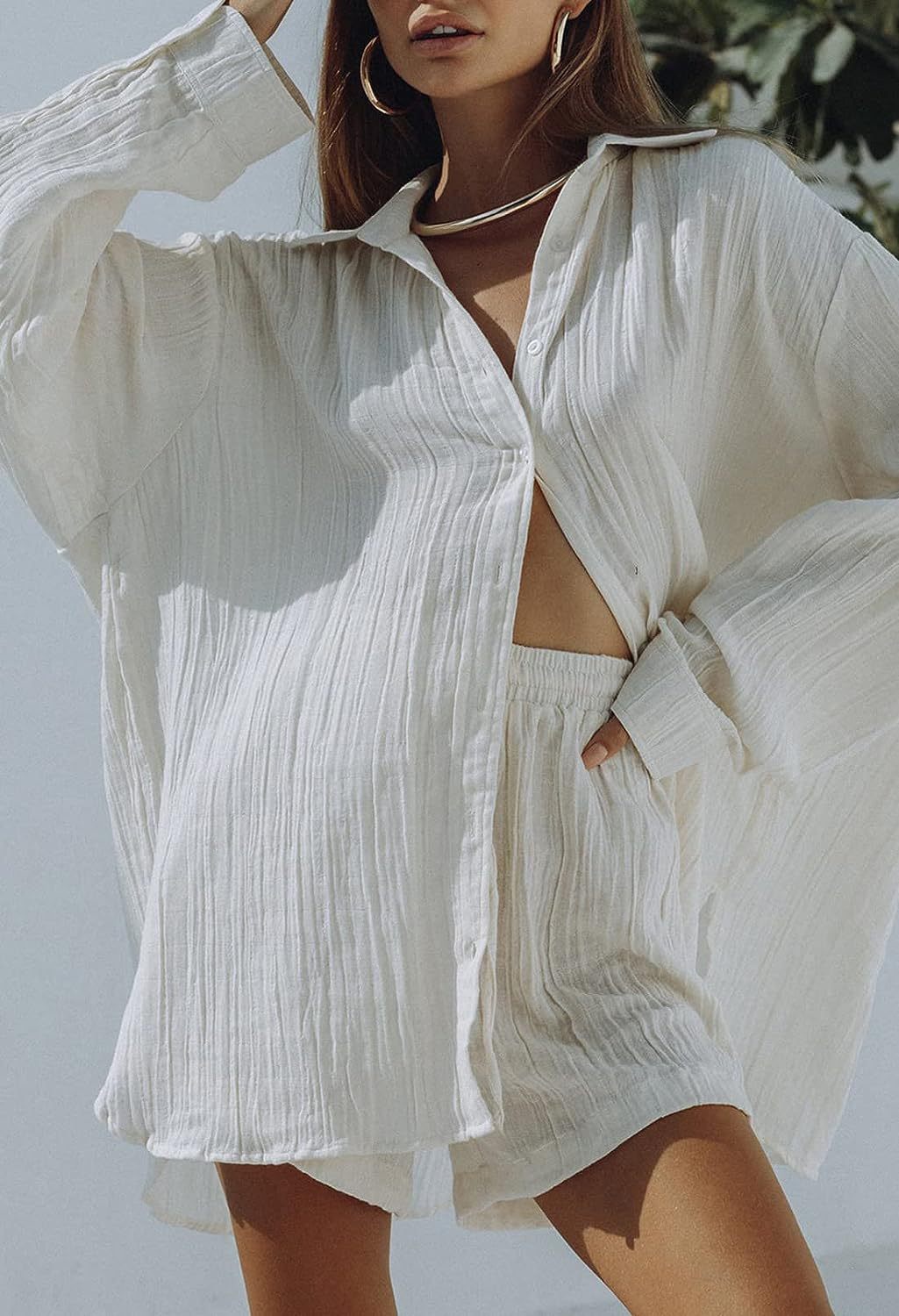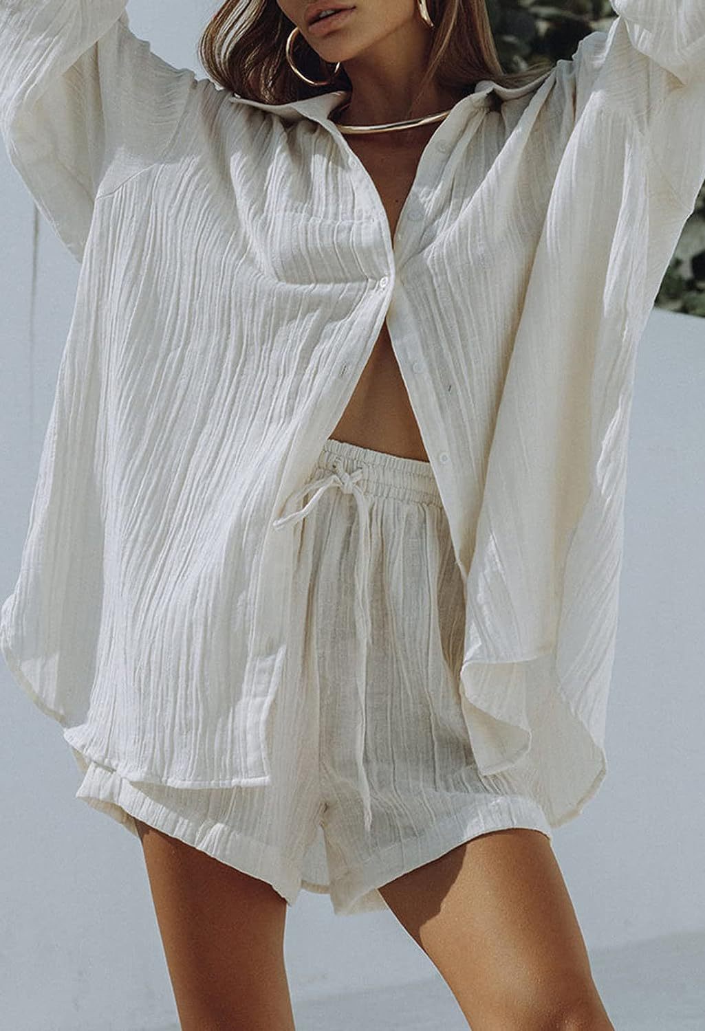 Women's Casual Long-sleeve Shirt And Shorts Set