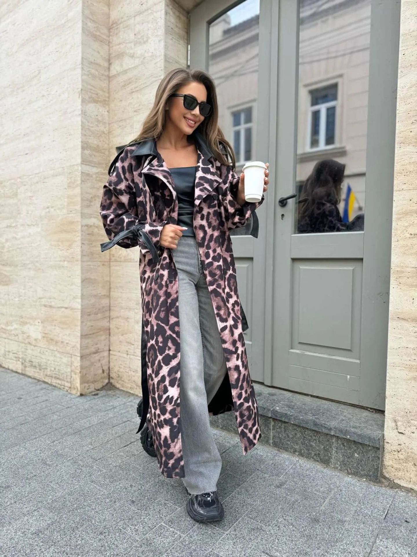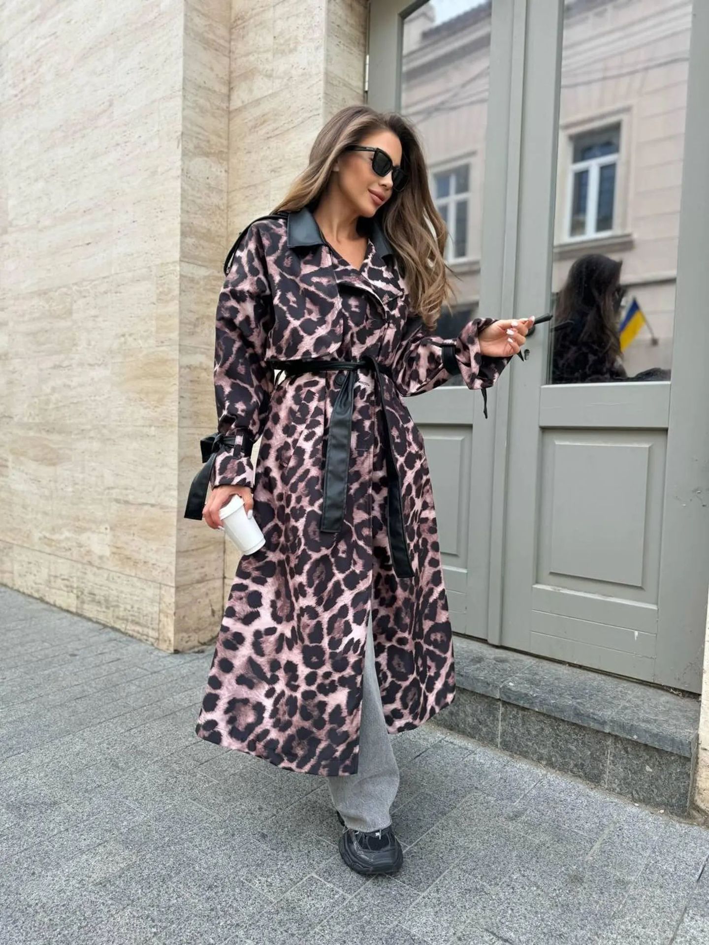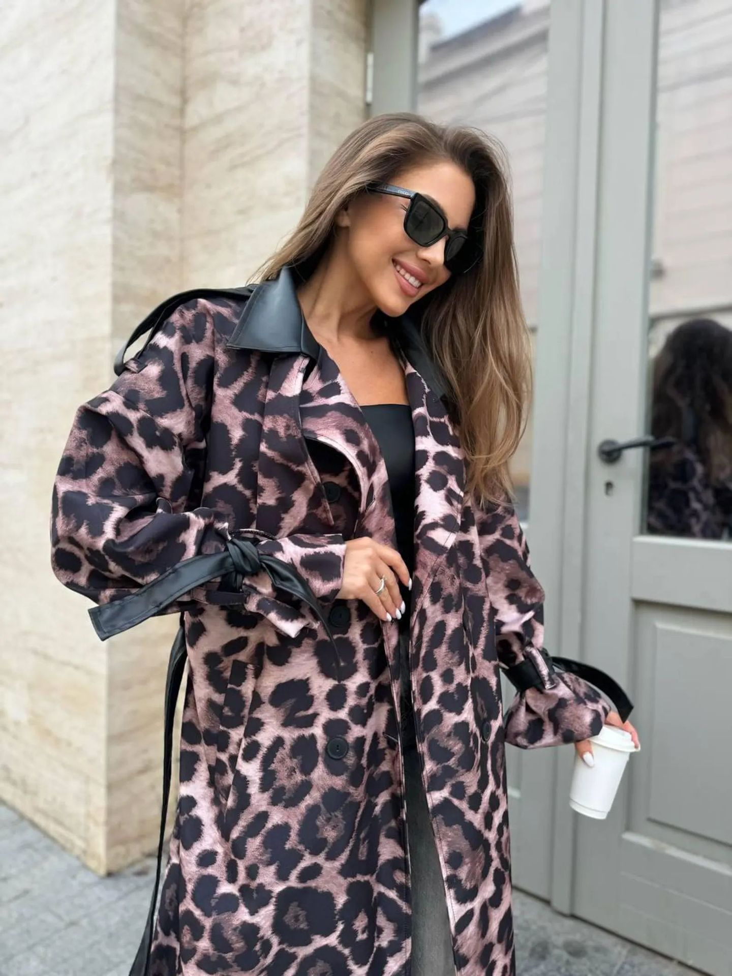 Women's Elegant Casual Loose Leopard Print Patchwork Leather Jacket
