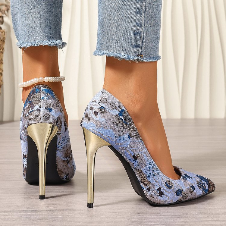 Women's Ethnic Style Flower Stiletto Heel Cheongsam High Heels