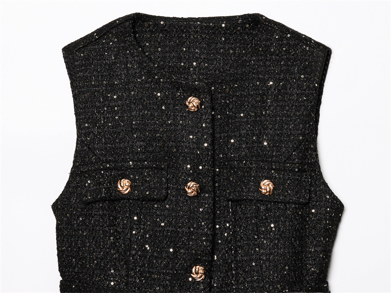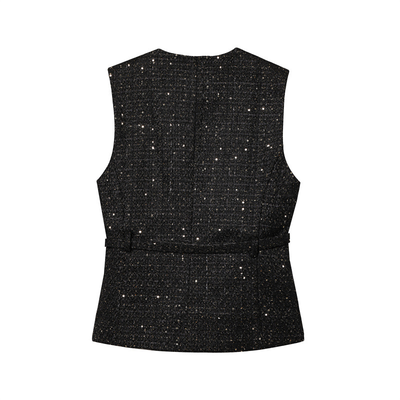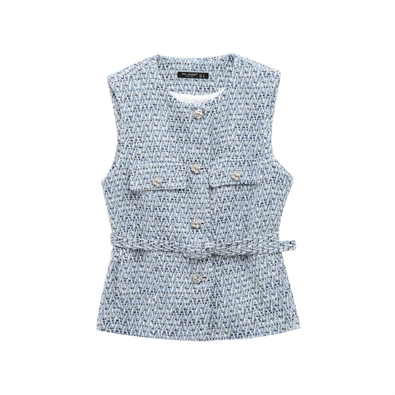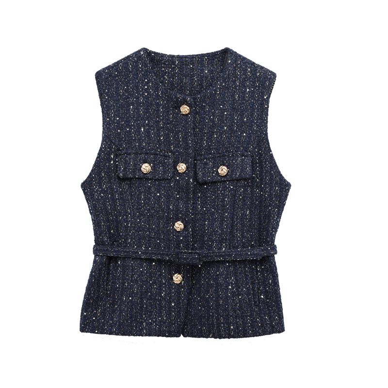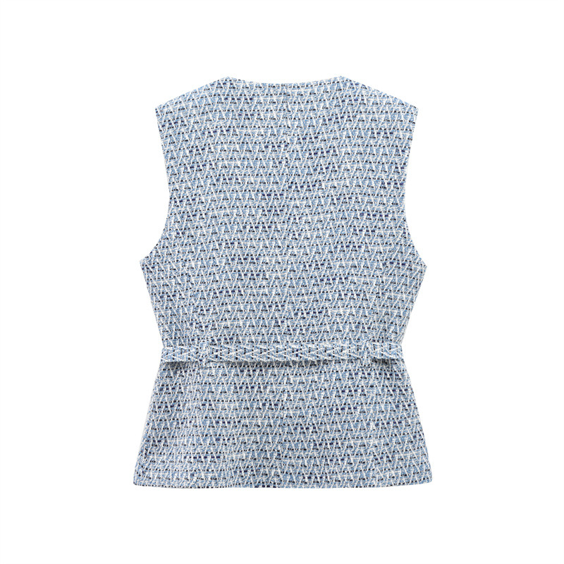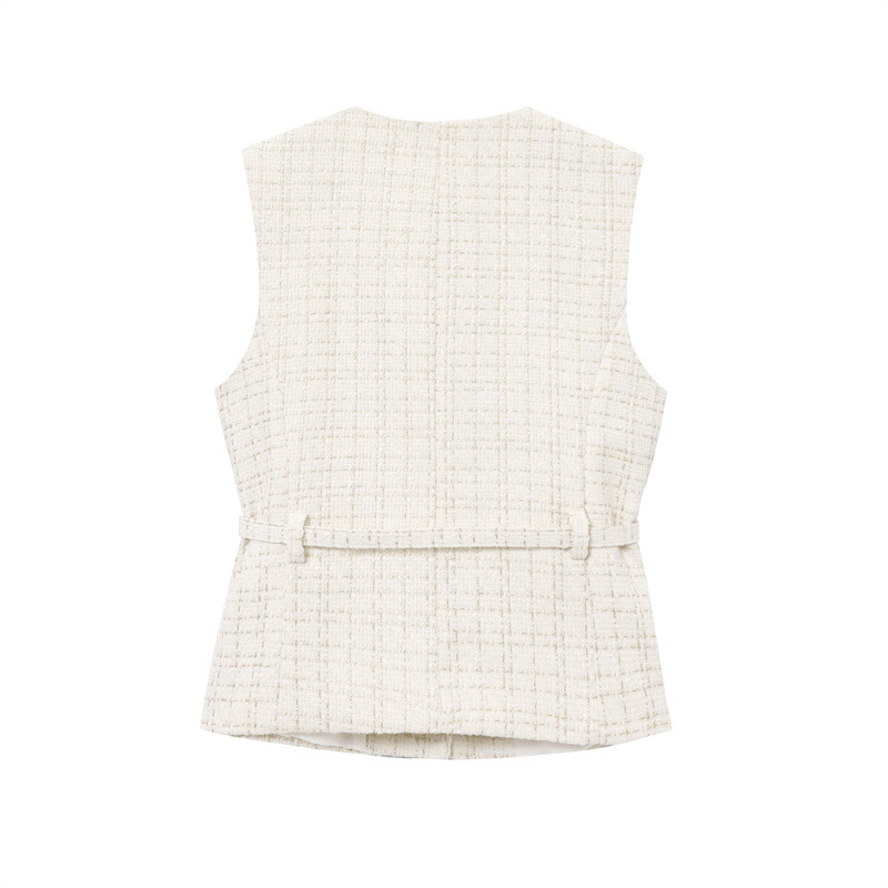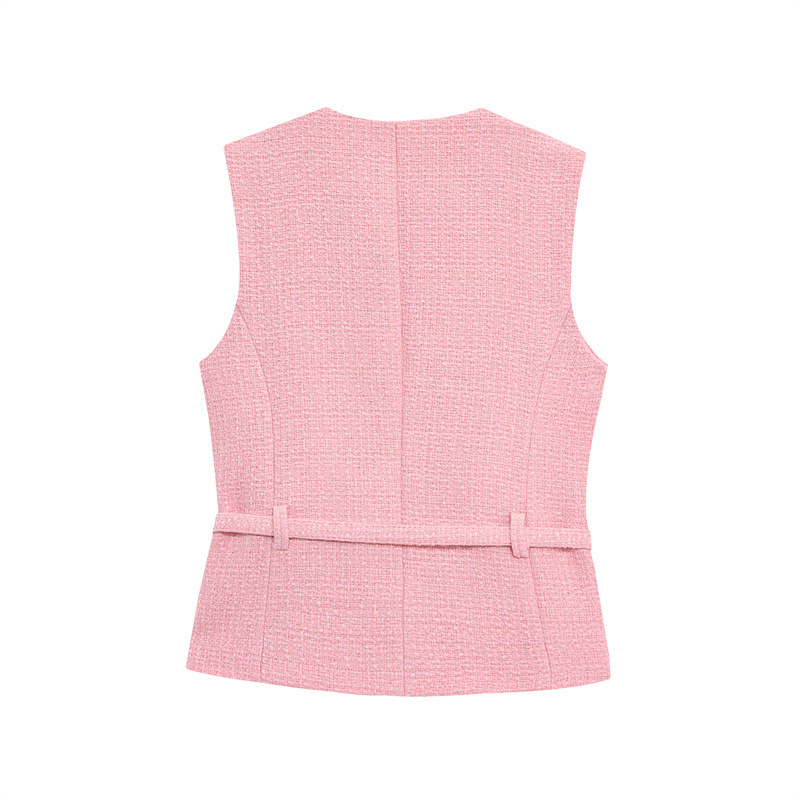 Women's Fashion Casual Sleeveless With Belt Texture Vest