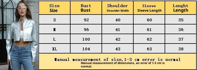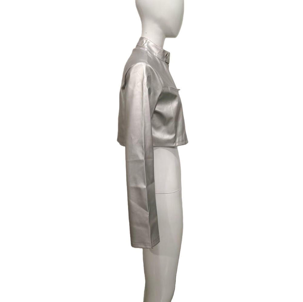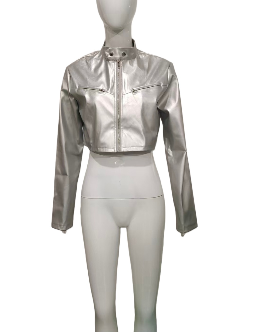 Women's Fashion Metallic Stand-collar Zipper Jacket