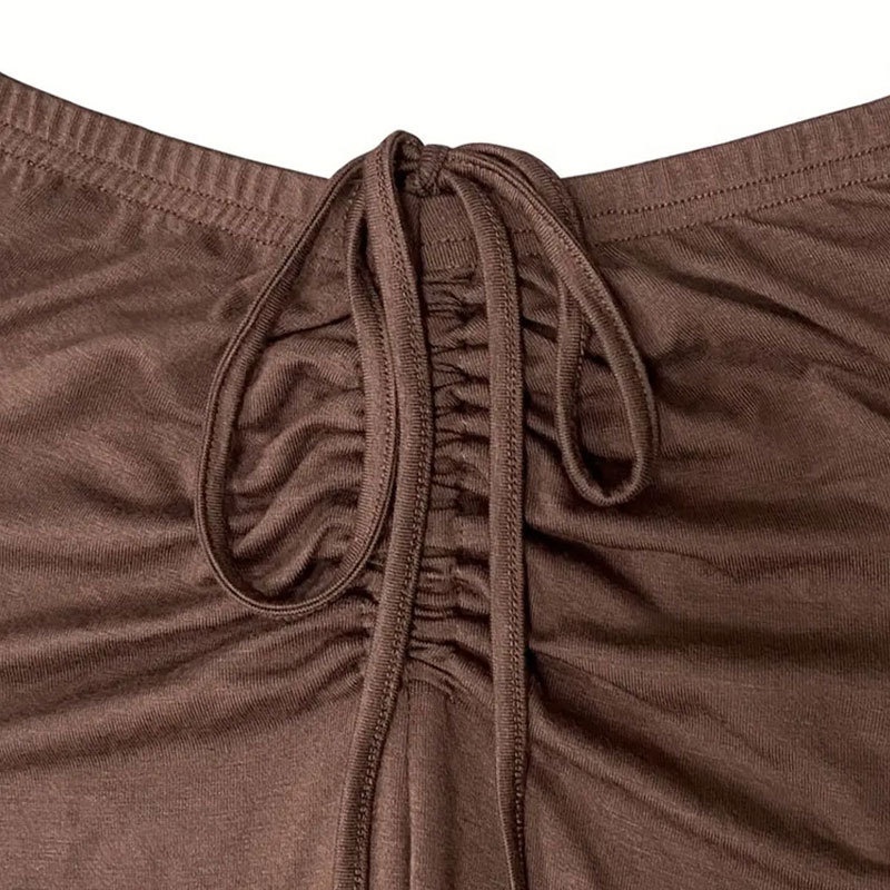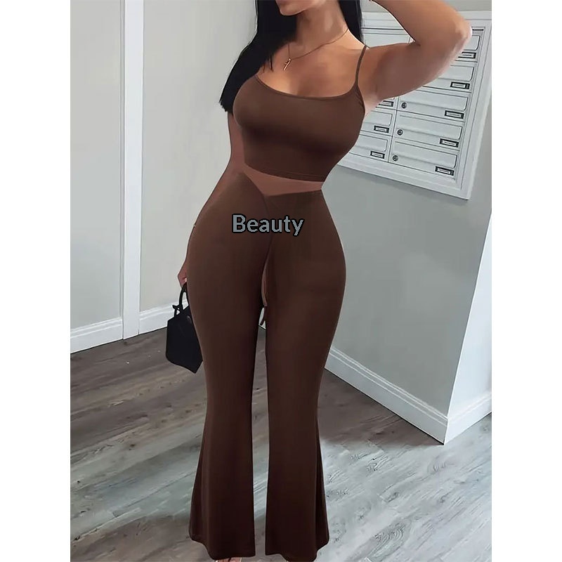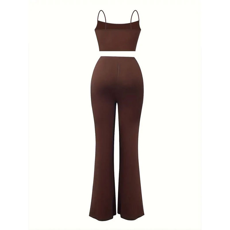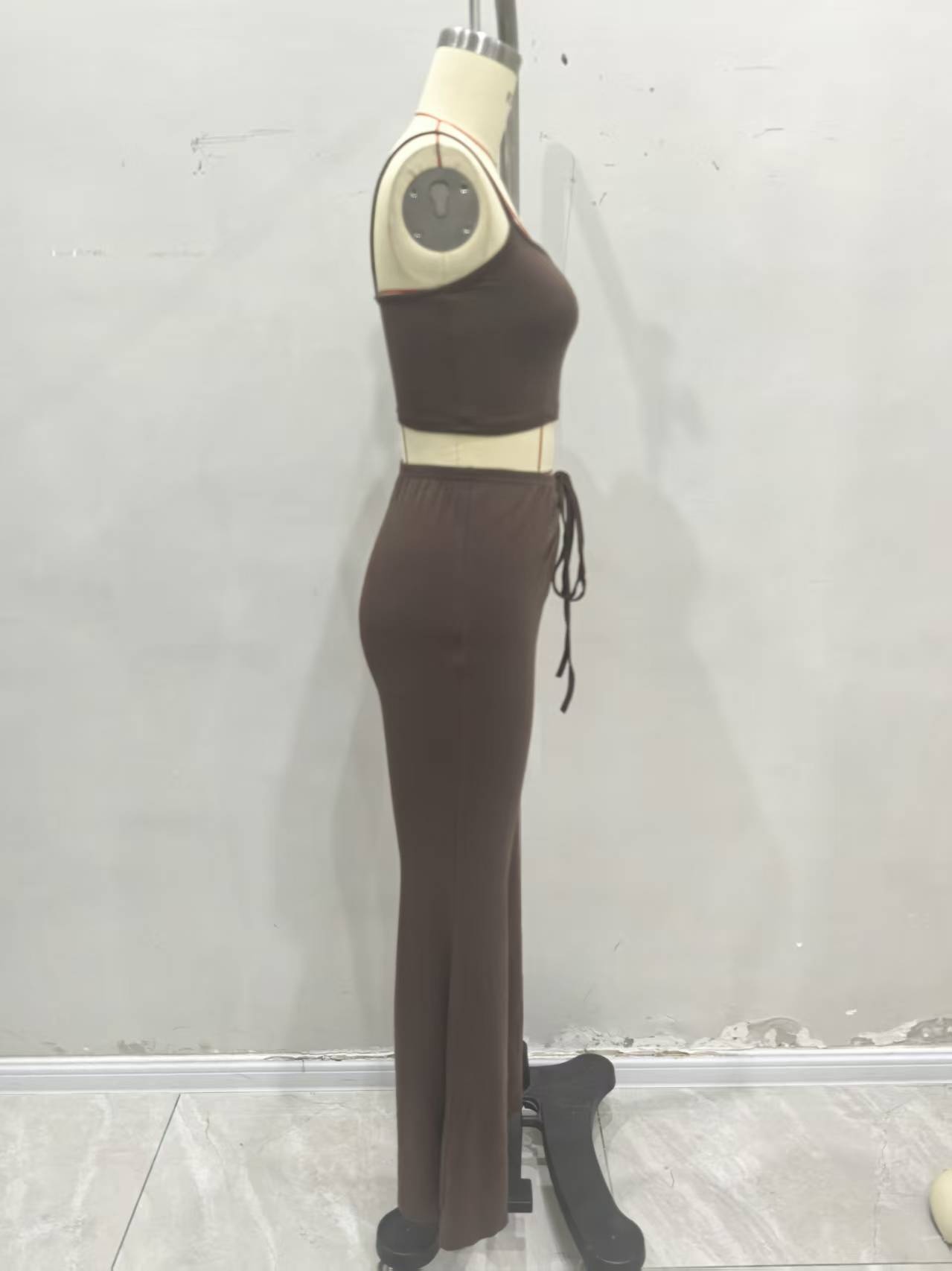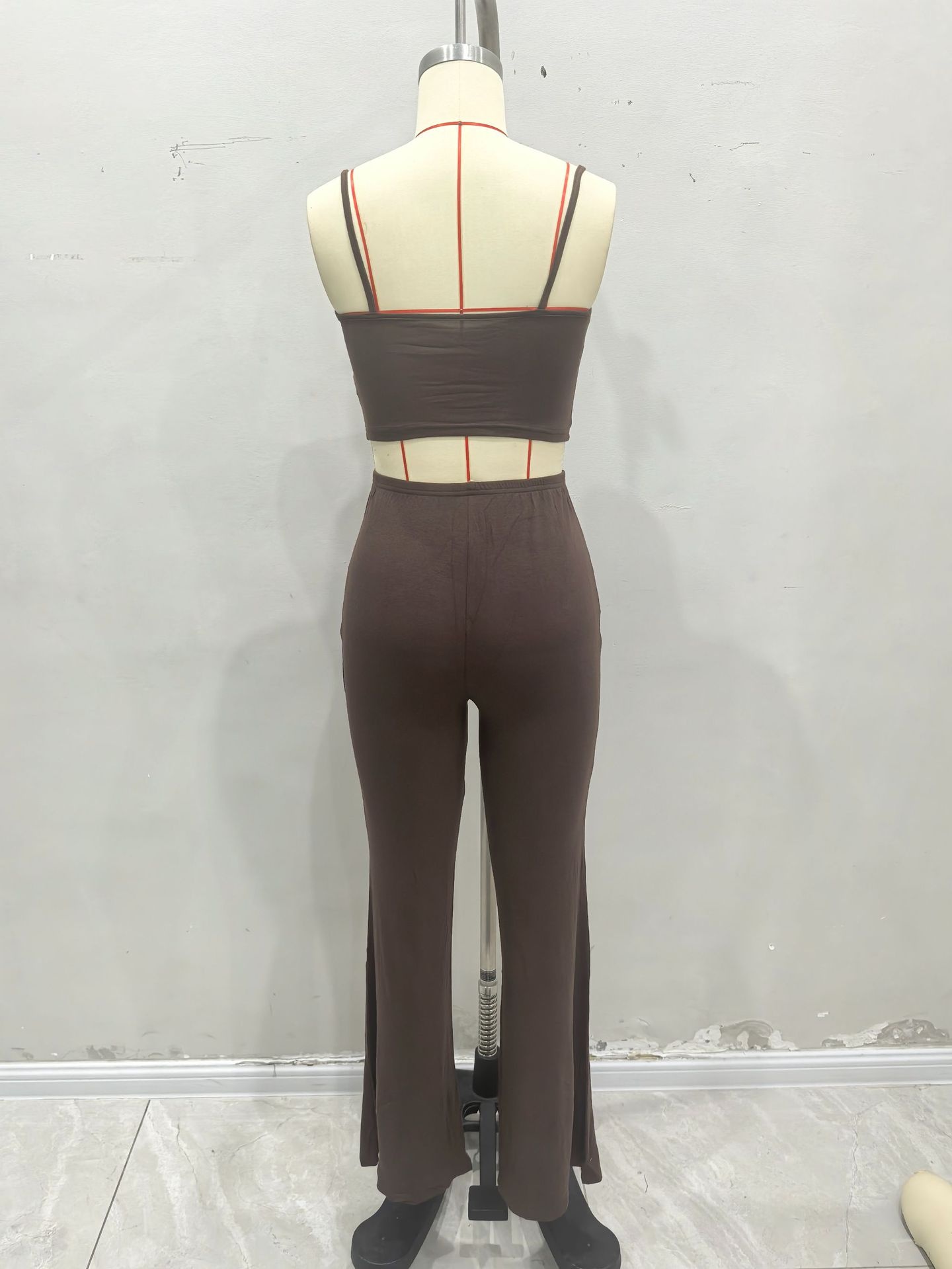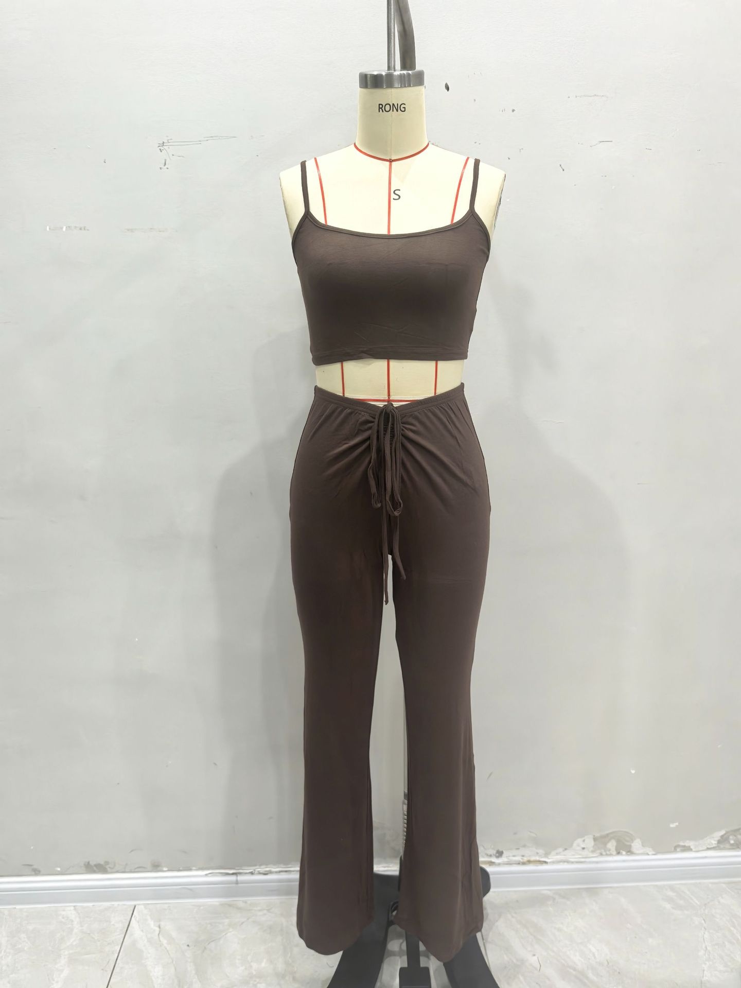Women's Sexy Halter Crop Top With Drawstring Front And Flared Pants Two-piece Set