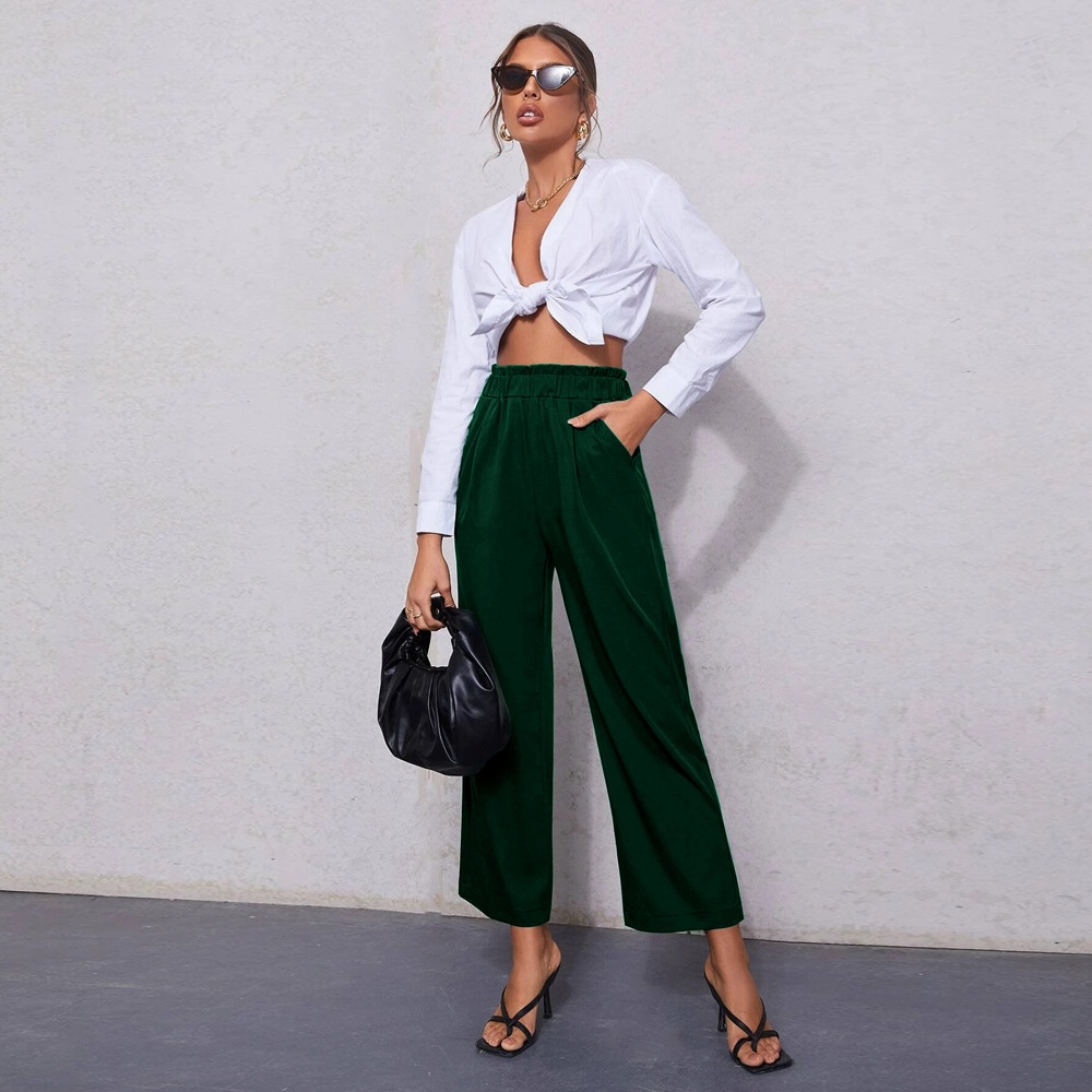 Women's Slim Waist Straight Leg Cropped Casual Pants