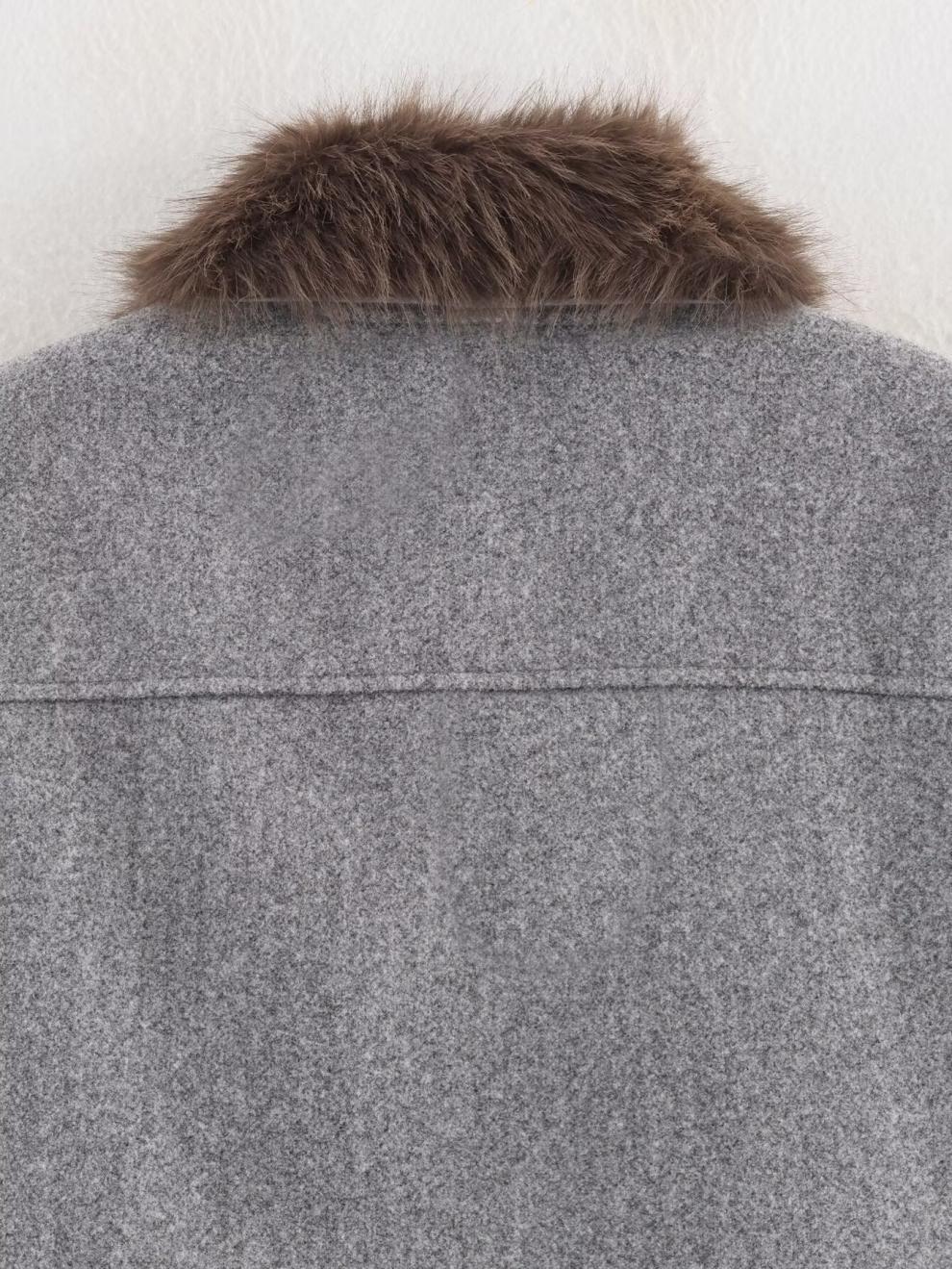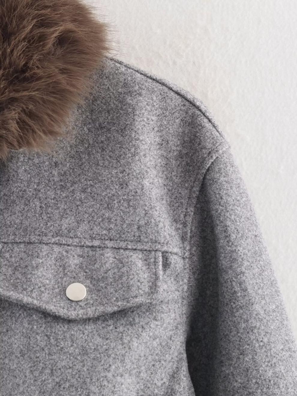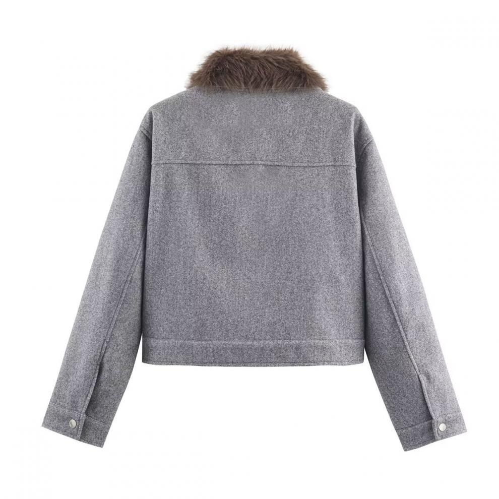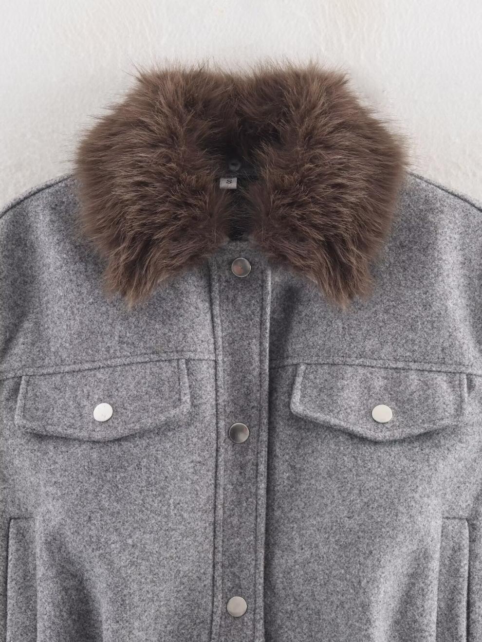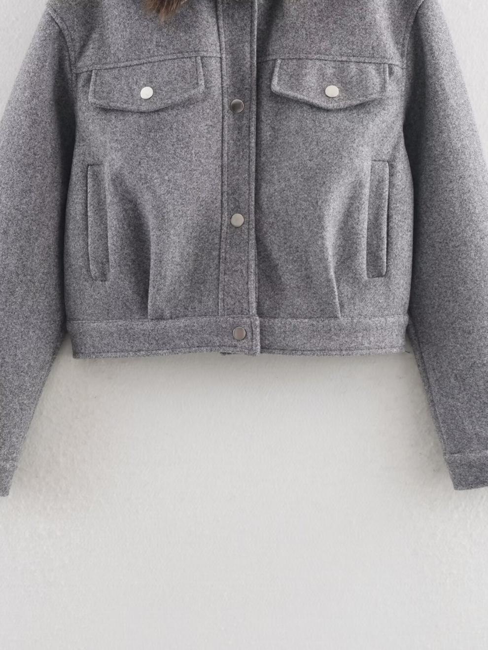 Women's Wool Lapel Single-breasted Long Sleeve Pocket Trim Jacket