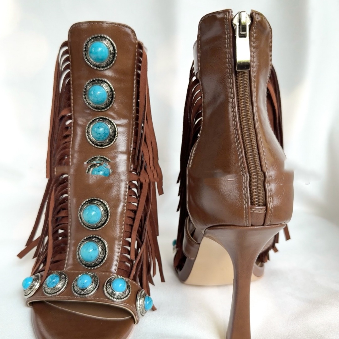 Women's Zipper Round Toe Hollow Tassel Sandals